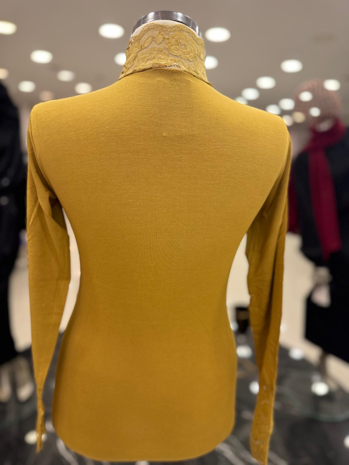 ENSAR GİYİM KADIN Dantelli Balıkçı Yaka Uzun Kol Likralı Penye Mevsimlik Uzun Kol Body