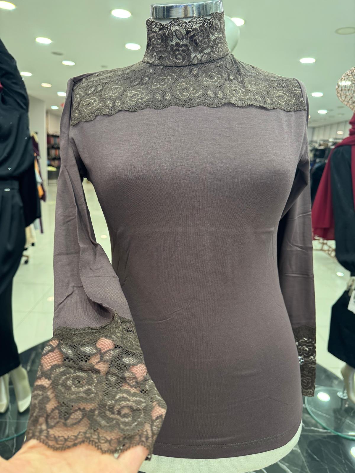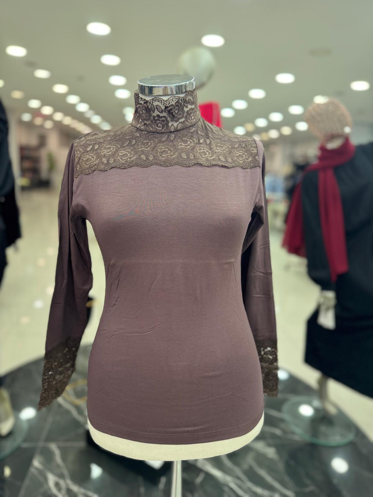 ENSAR GİYİM KADIN Dantelli Balıkçı Yaka Uzun Kol Likralı Penye Mevsimlik Uzun Kol Body