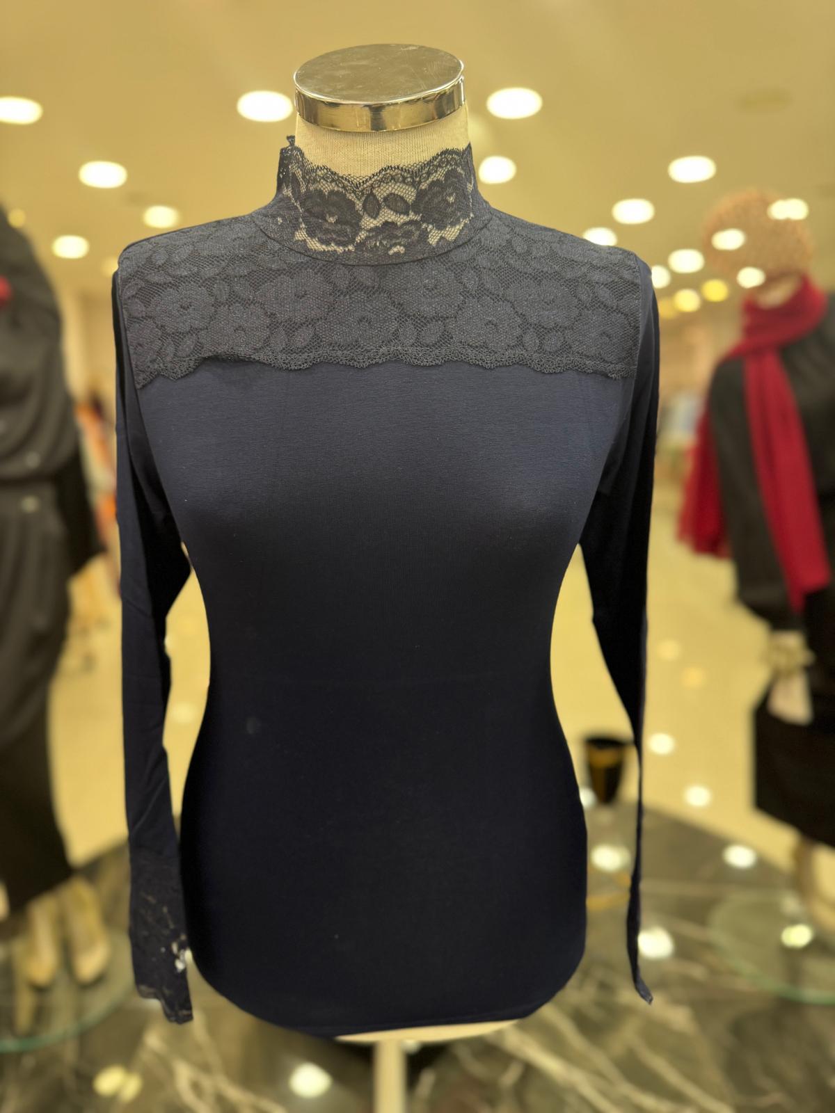 ENSAR GİYİM KADIN Dantelli Balıkçı Yaka Uzun Kol Likralı Penye Mevsimlik Uzun Kol Body