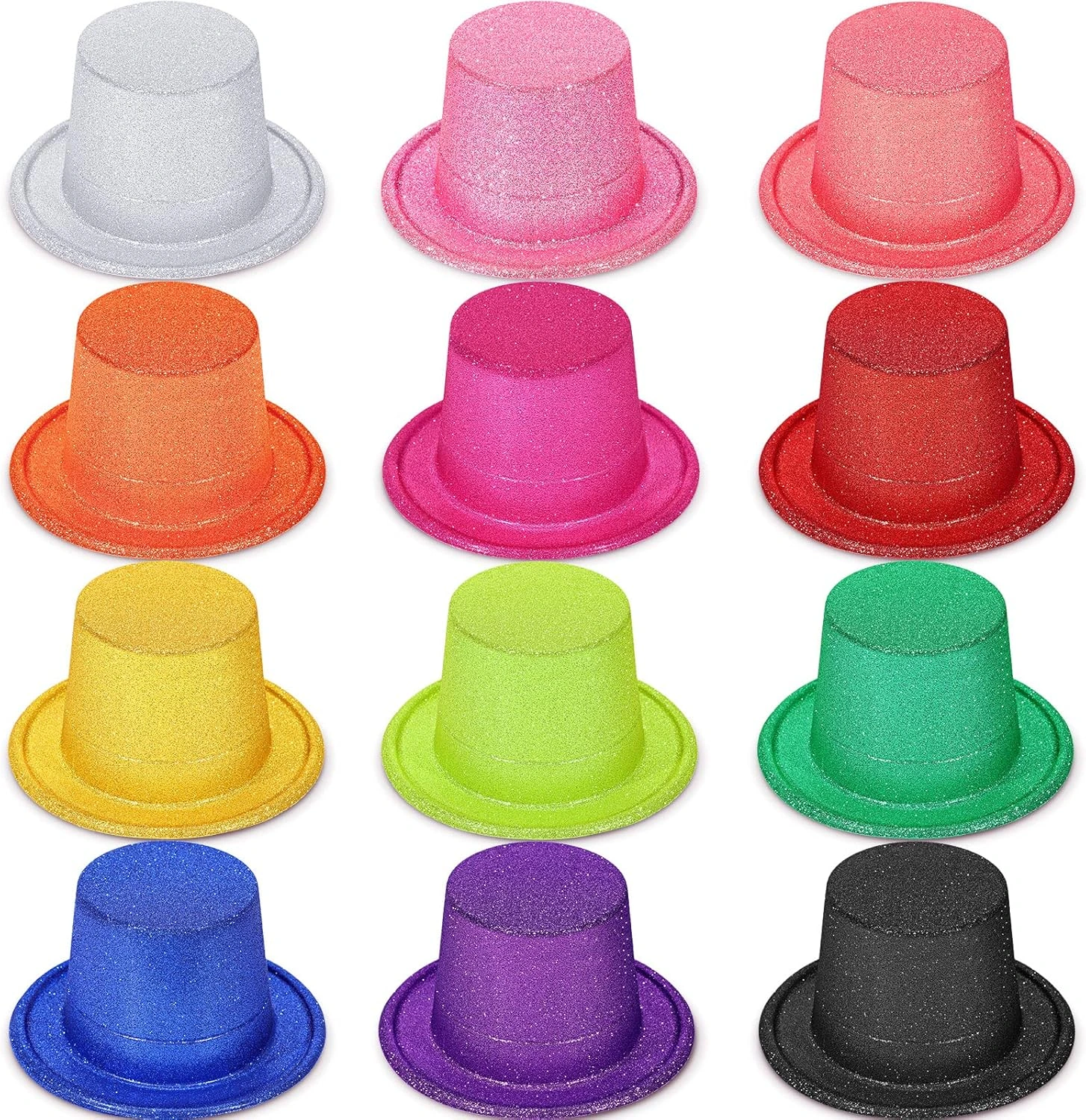 Partilerinize ışıltı katın! 12 adet rengârenk simli silindir şapkadan oluşan bu set, eğlencenizi zirveye taşıyor. Her pakette kırmızı, mavi, pembe, yeşil, siyah, altın, gümüş ve daha birçok göz alıcı renk bulunur.