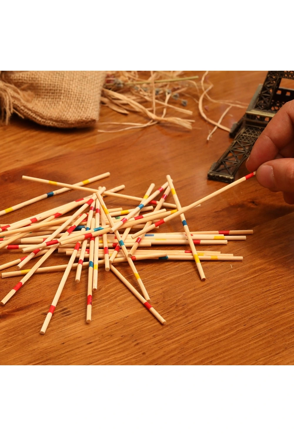 Çubukları dik olarak yere bırakın, diğer çubukları kıpırdatmadan çubukları toplayan oyunu kazanır.