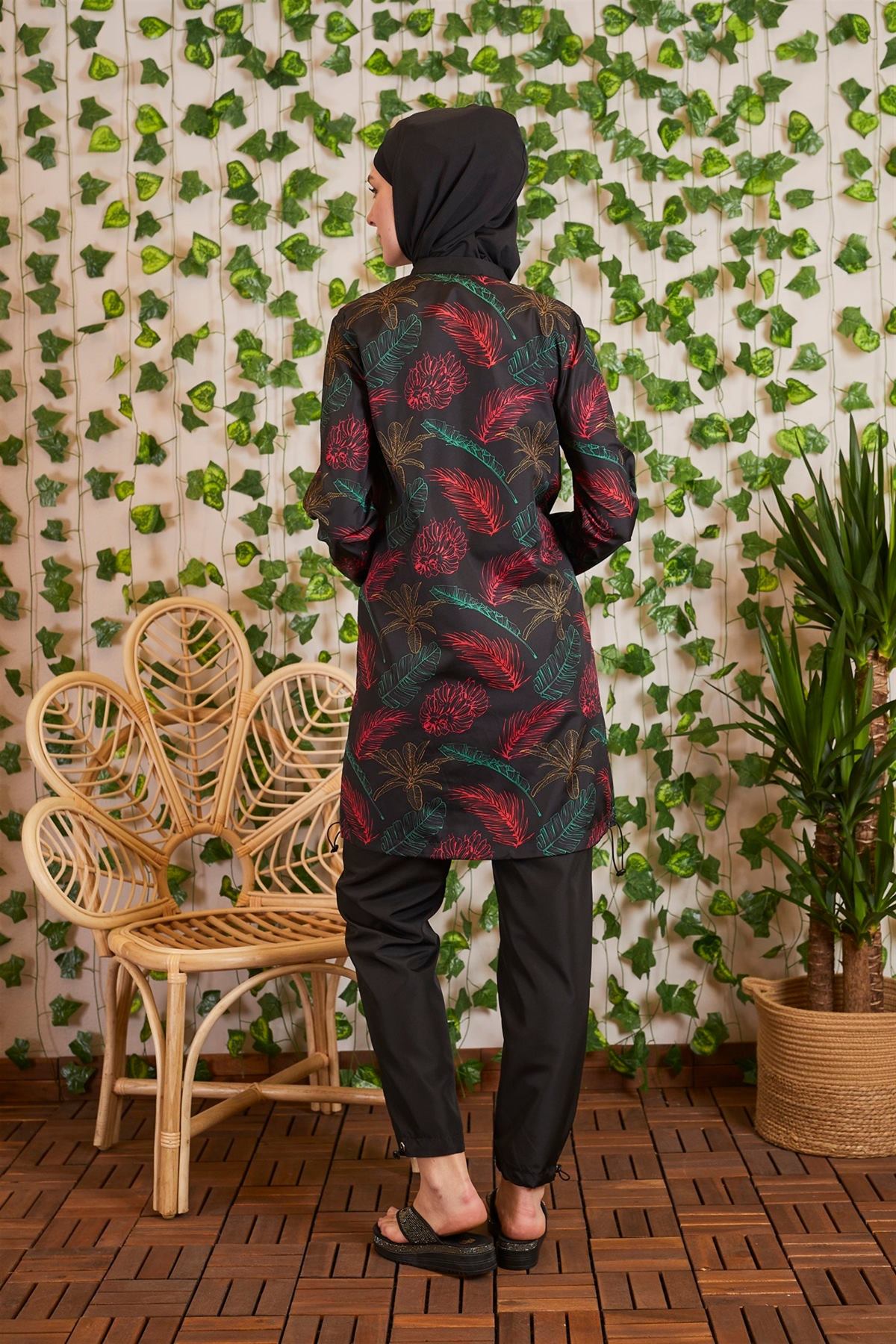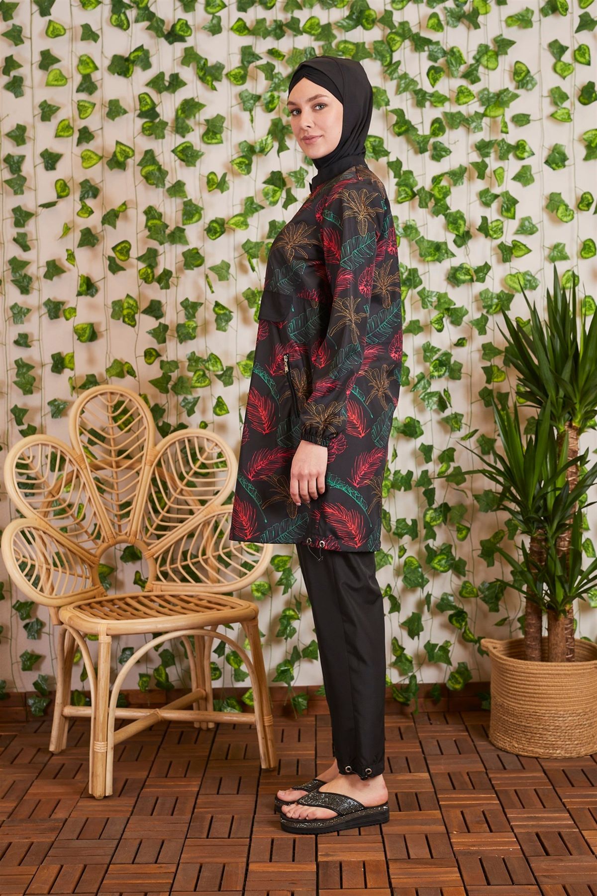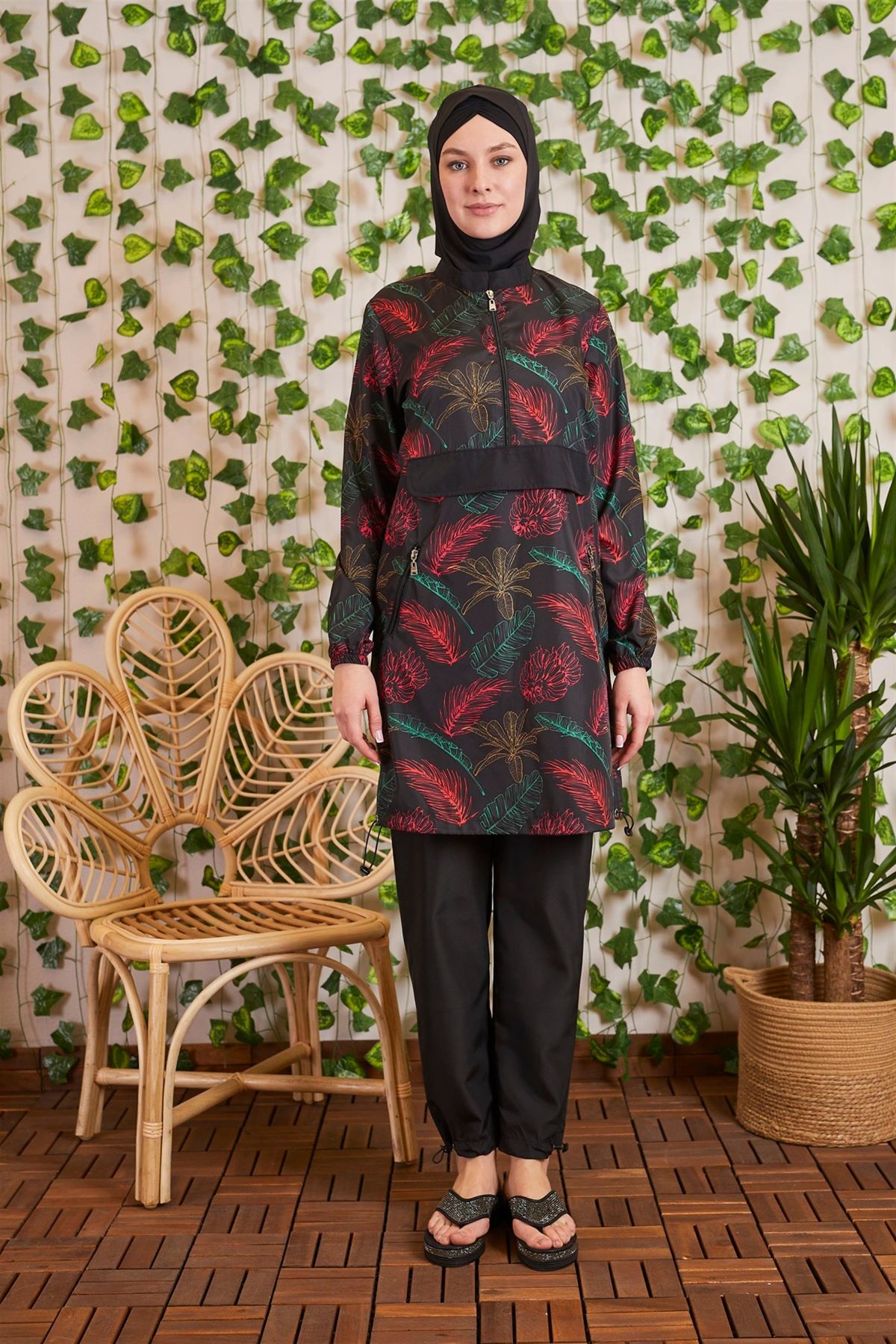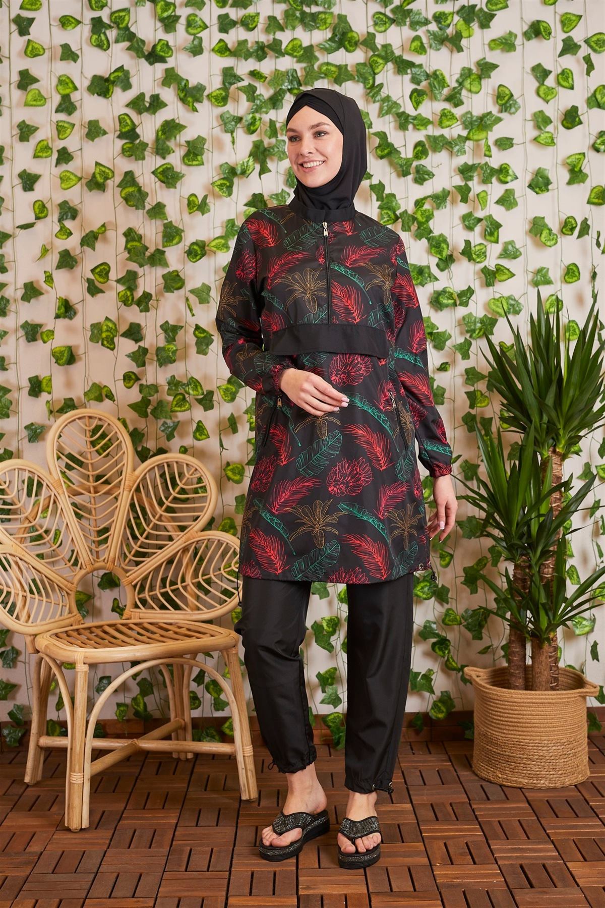 YARIM FERMUARLI CEPLİ TESETTÜR MAYO ÖLÇÜSÜ:GÖGÜS 100 CM, BEL 106 CM, BASEN 114 CM, KOL BOYU 62 CM, BEDEN BOYU 95 CM.TAYT ÖLÇÜSÜ:BEL 68 CM, BASEN 118 CM, BOY 103 CM' DİR.BEDENLER ARASINDA 4 CM FARK VARDIR.MODELDE 36 BEDEN KULLANILMIŞTIR. %100 POLYAMİD.
