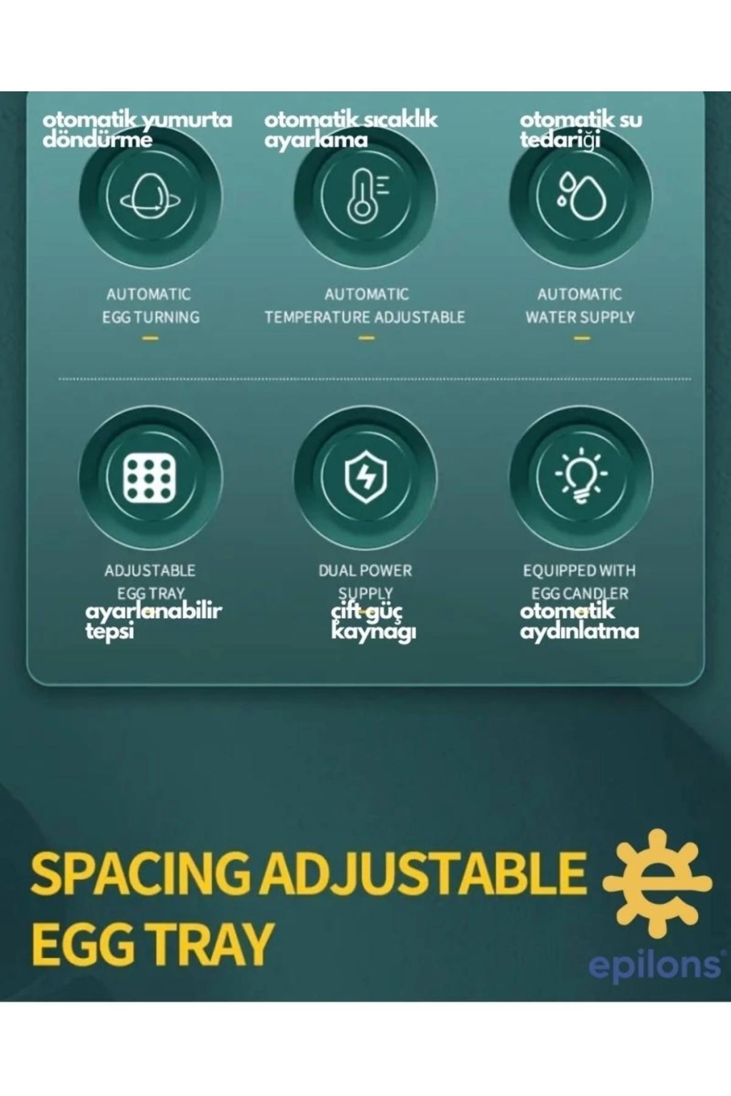 Yumurta Kapasitesi: 130 tavuk, 88 ördek, 66 kaz, 198 güvercin, 330 bıldırcın