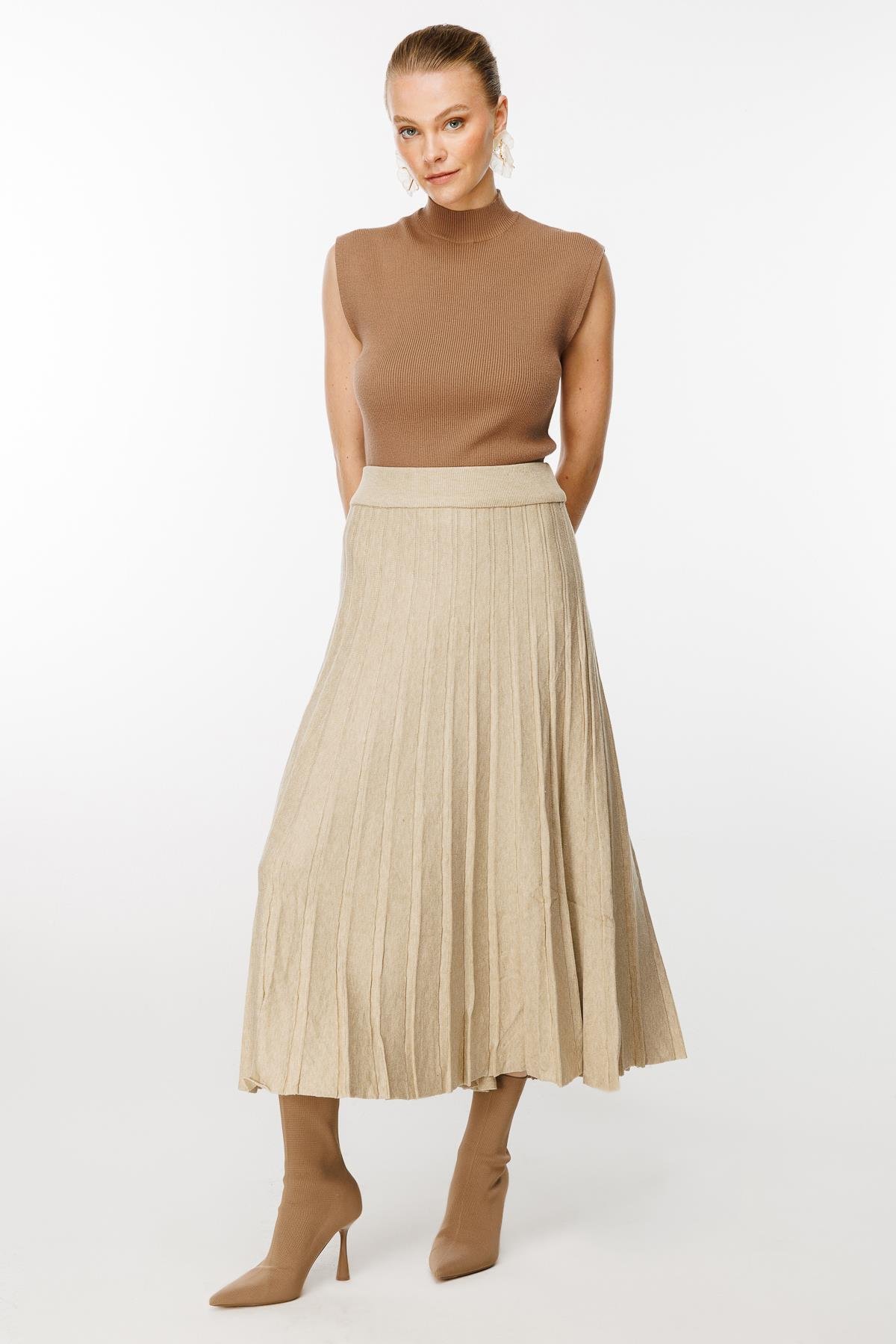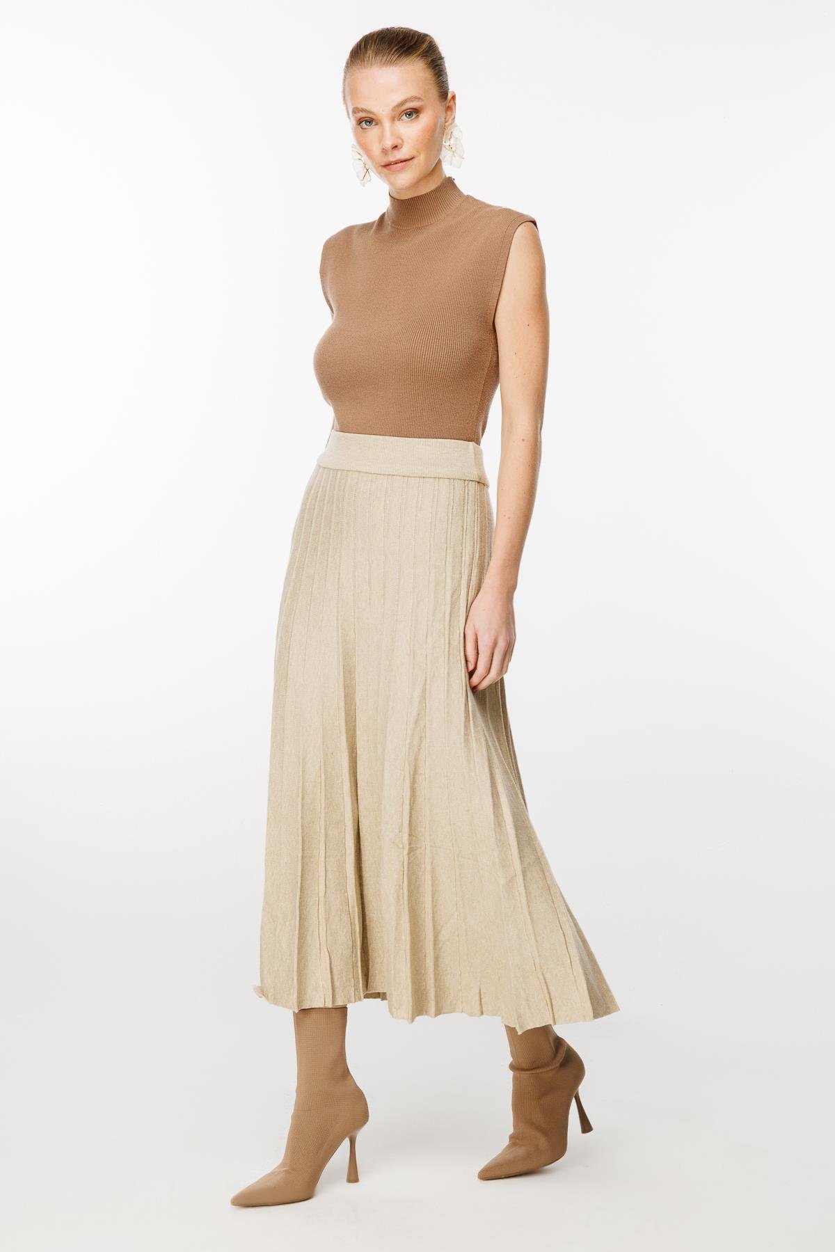YENİ SEÇİL KADIN esnek bel pliseli basic etek 10002521611019