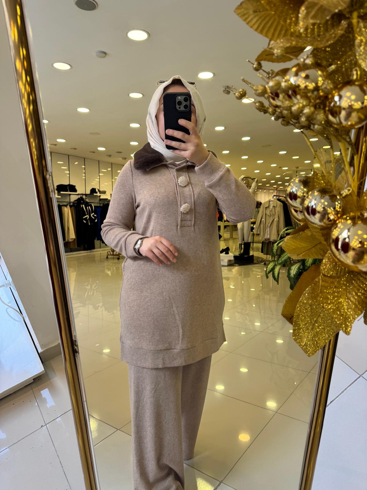 YENİ FUAT GÜRŞEN KADIN BROŞÜR DETAYLI YAKASI KÜRKLÜ TUNİK 2334