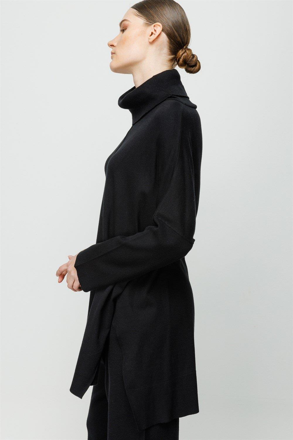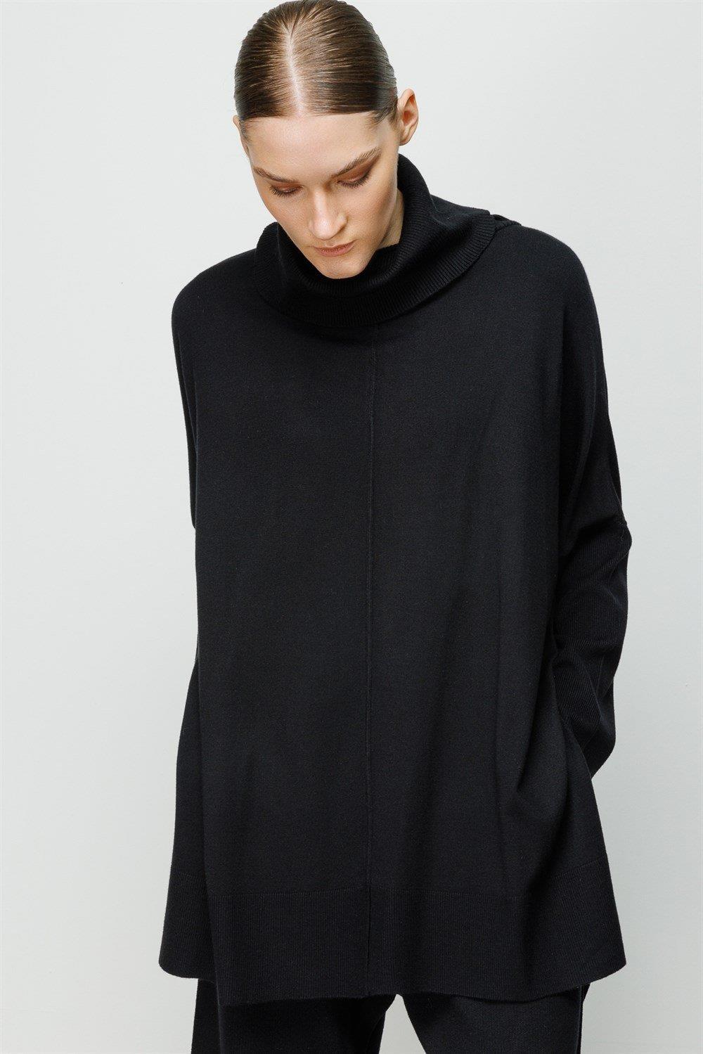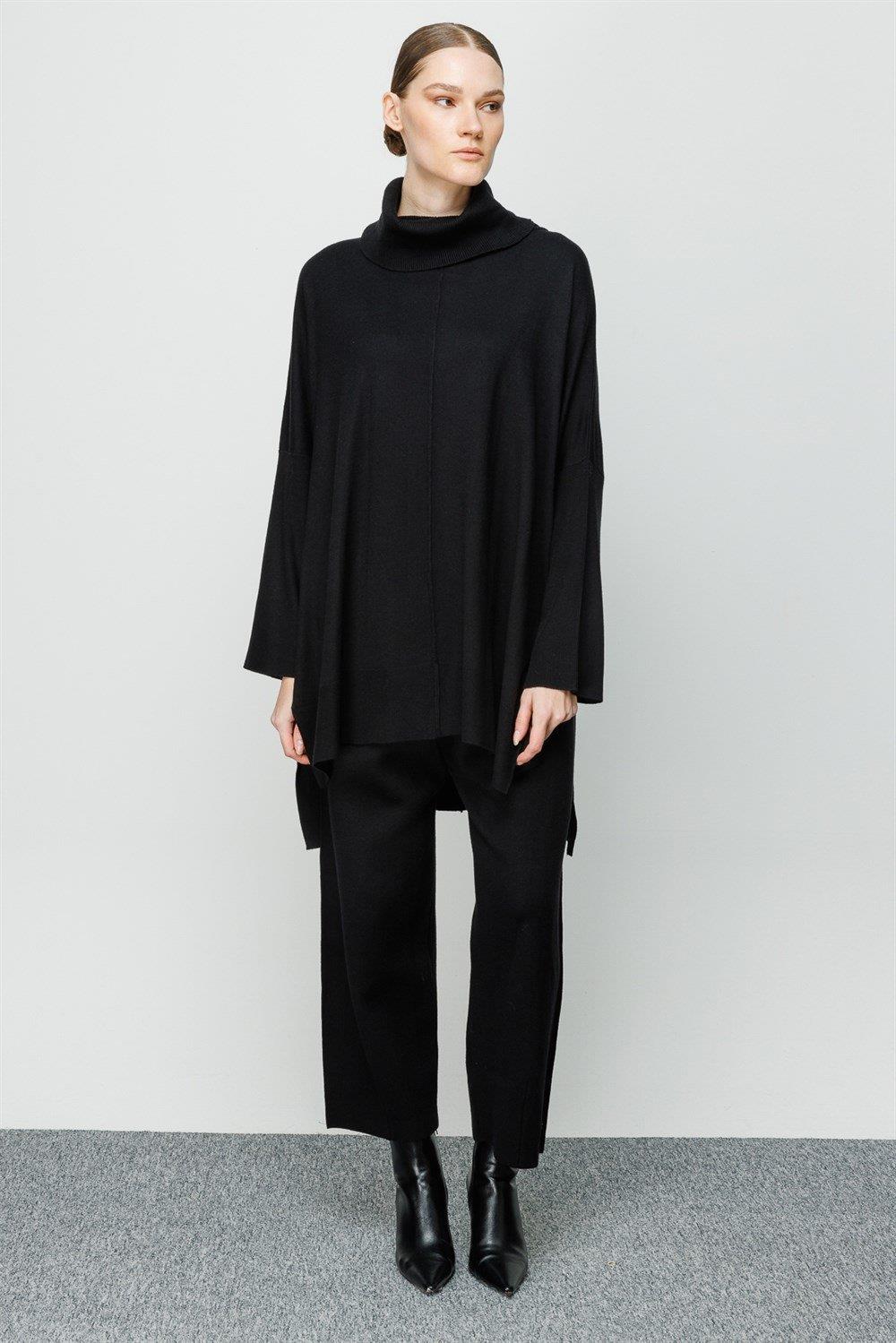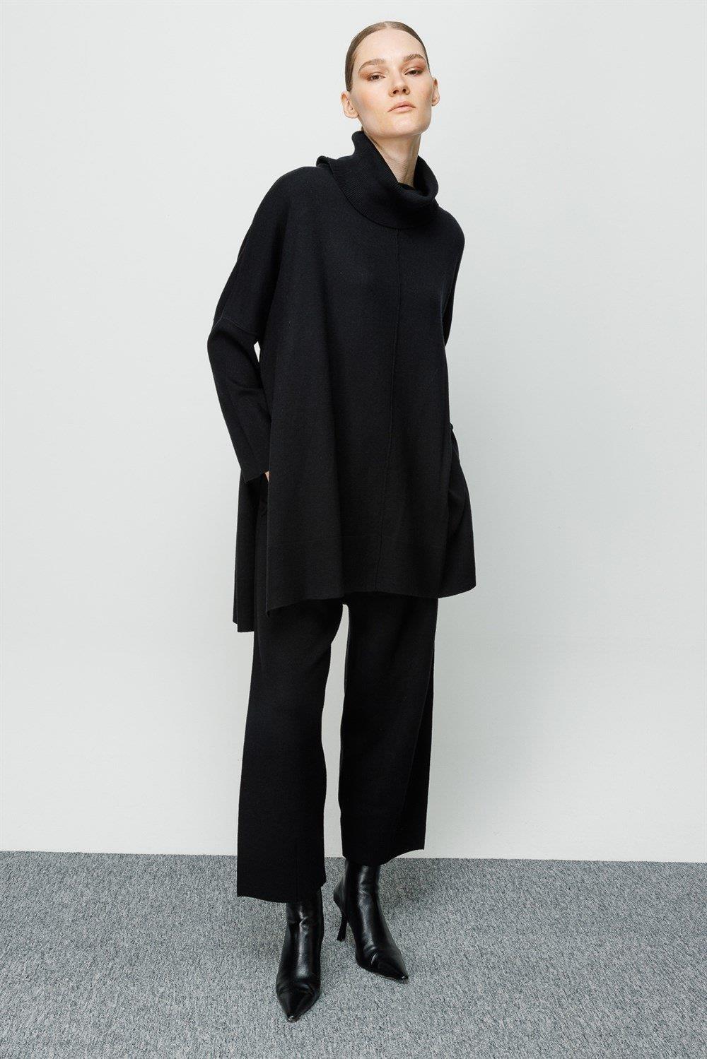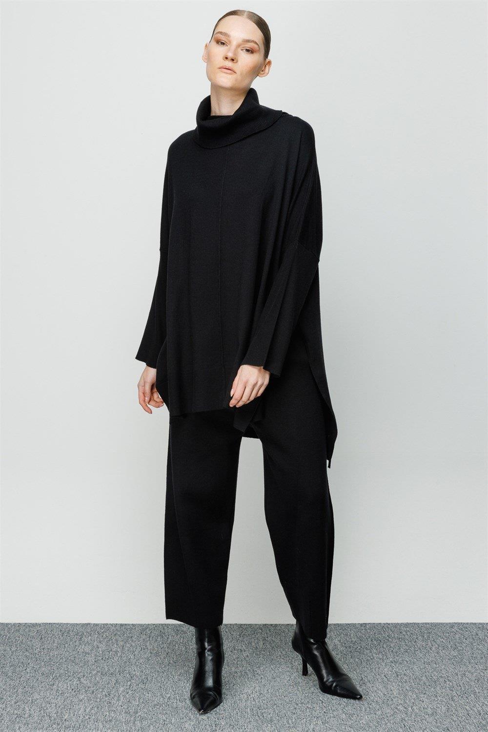 Beli lastikli pantolon balıkçı yaka tunik pantolon triko takım.-