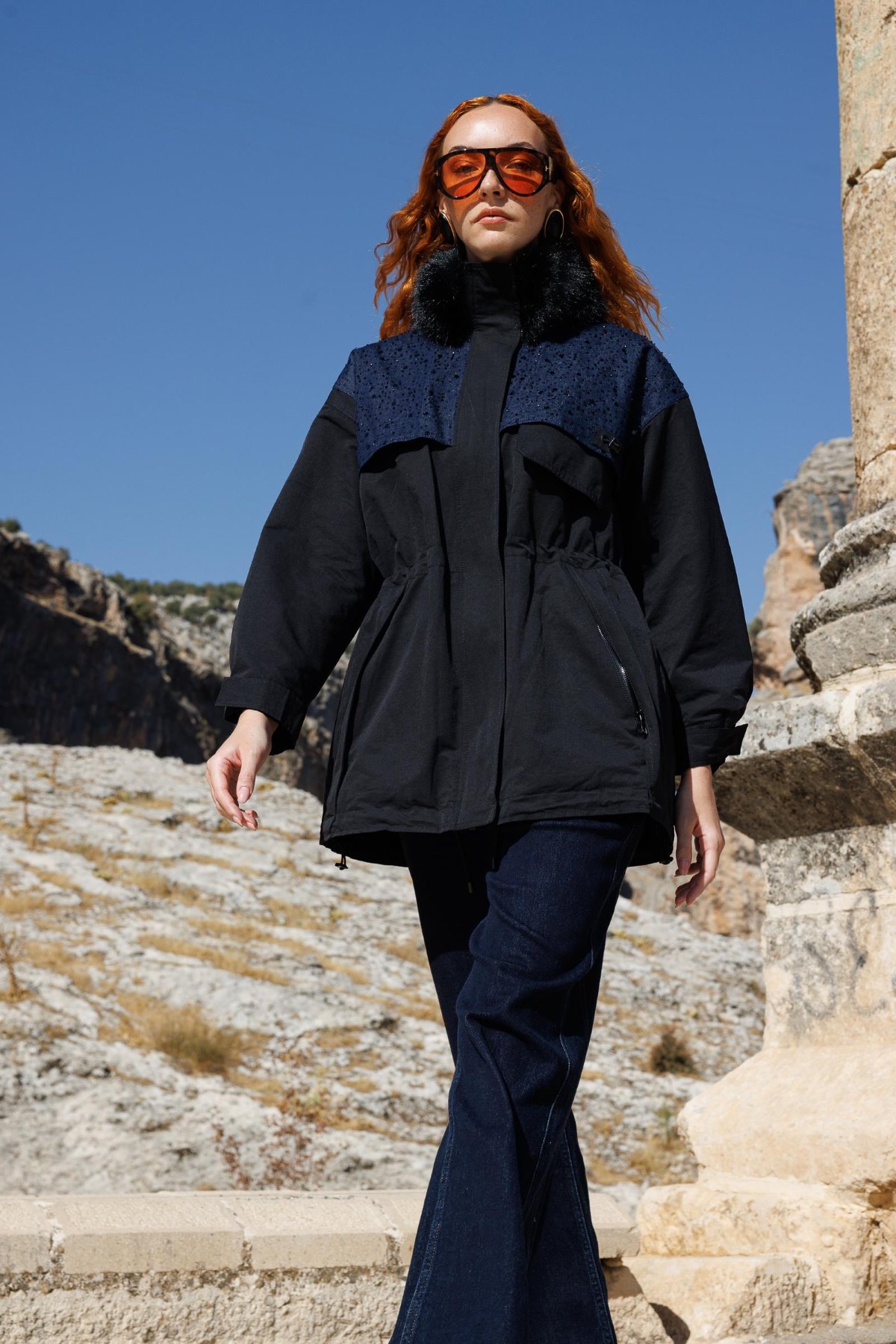 YENİ TRENÇ KADIN Yakası Kürklü Kapitone Kaban 1213