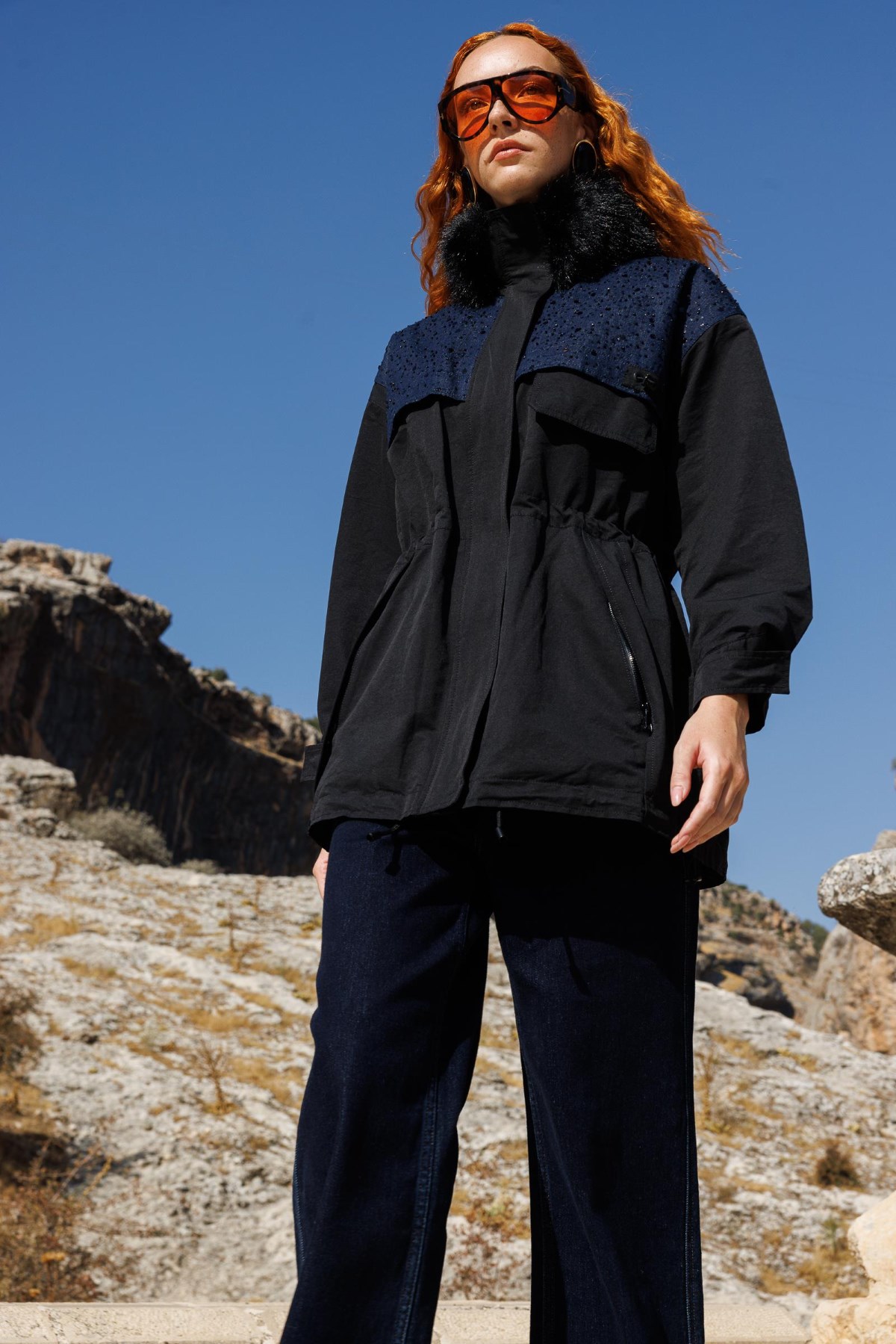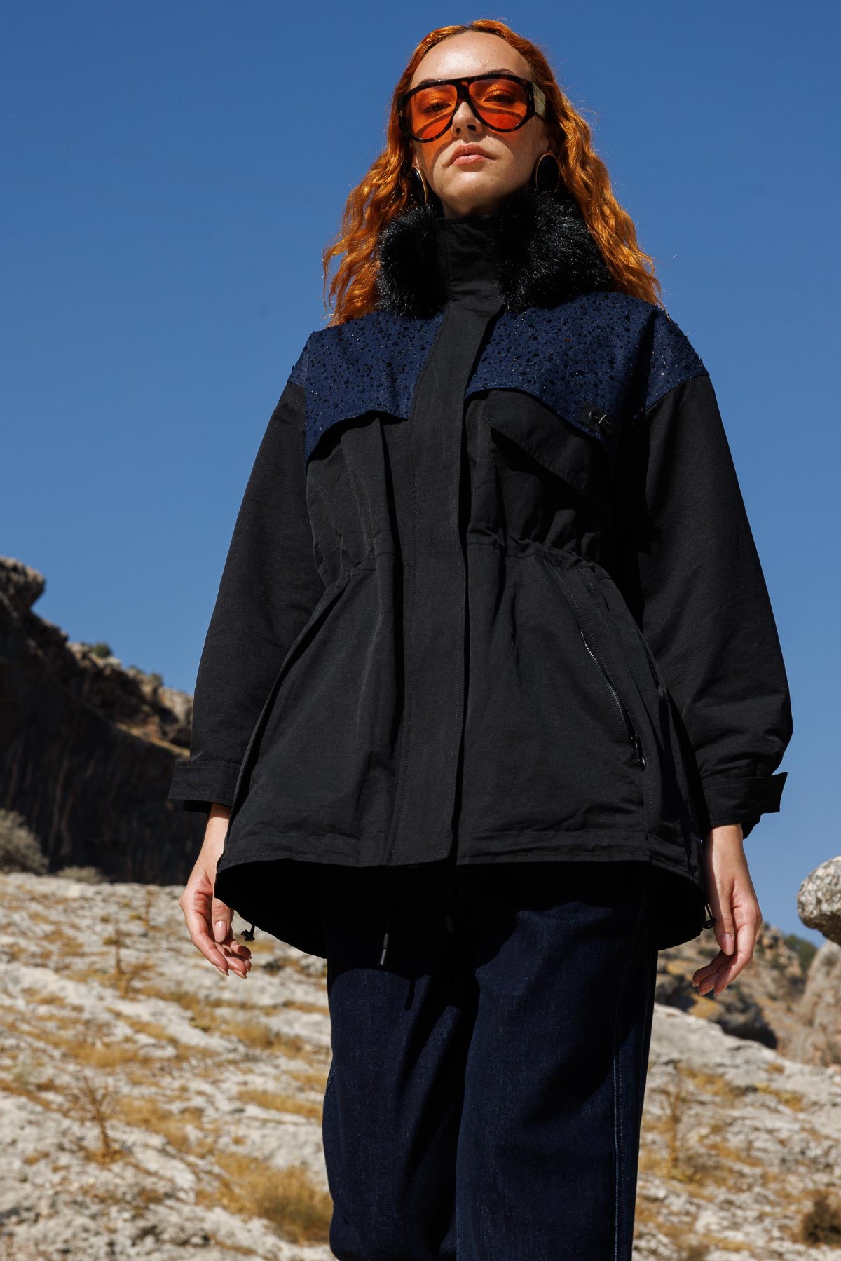YENİ TIĞ TRİKO Yakası Ve Cepleri Kürklü Triko Kaban KBN.21794.1