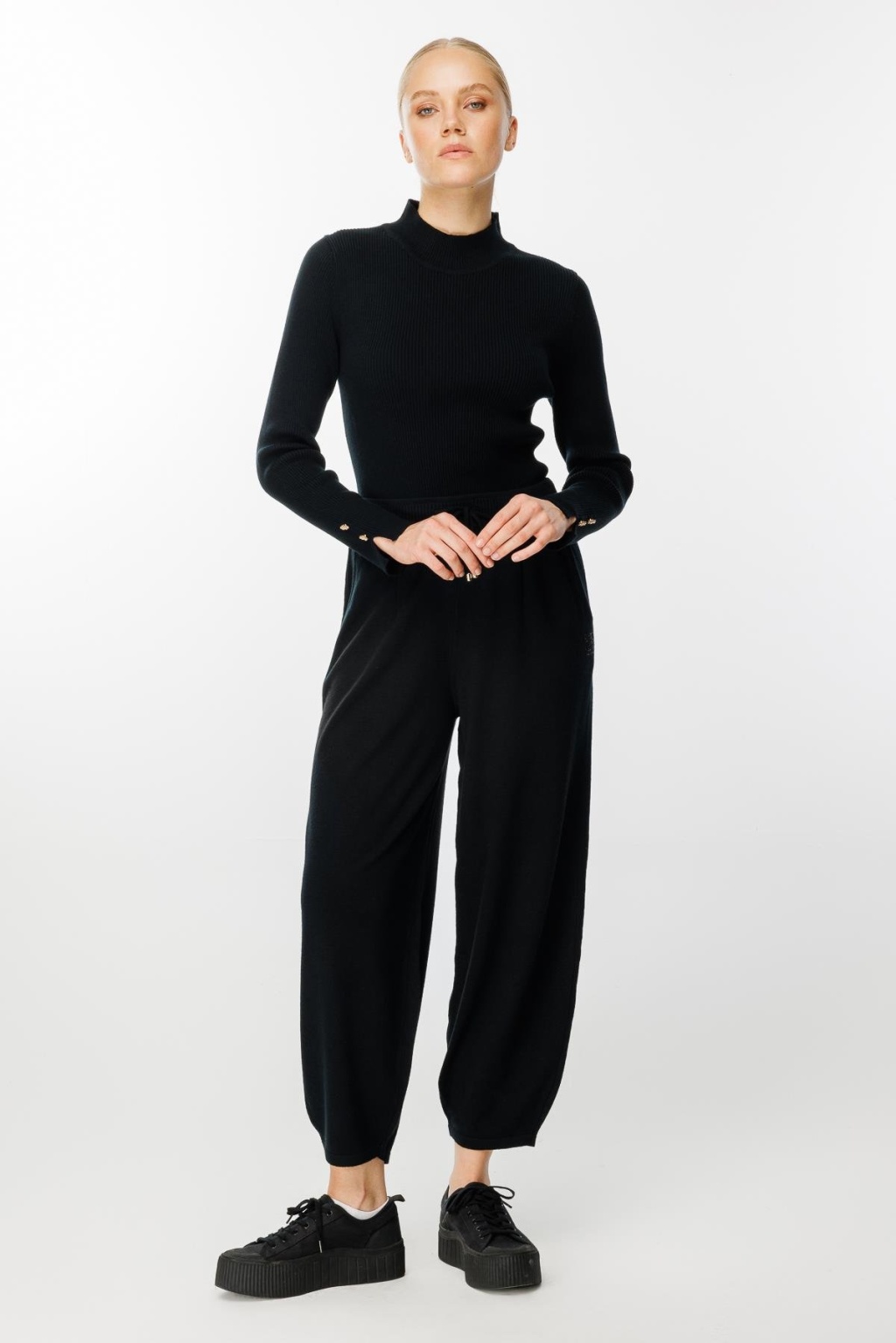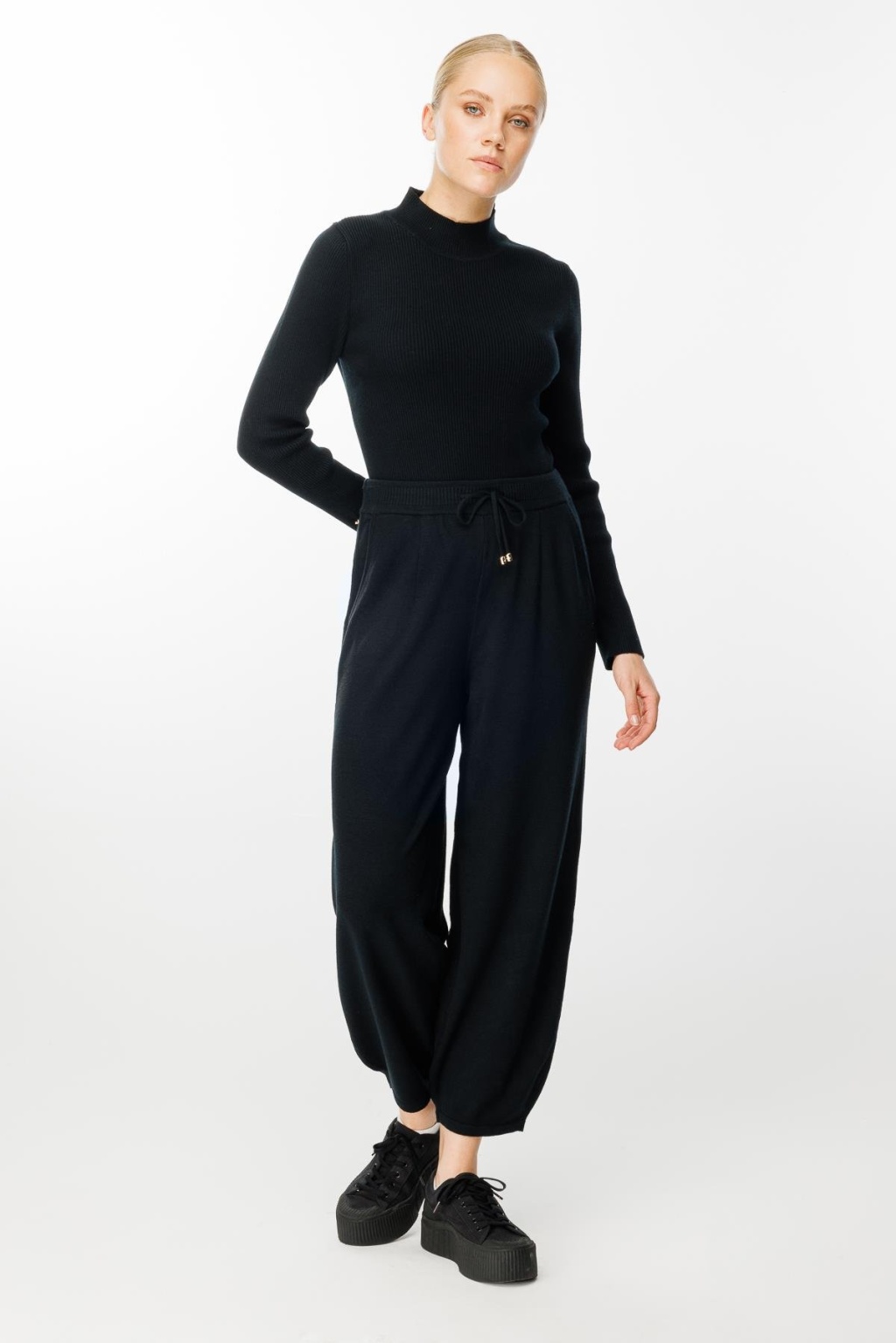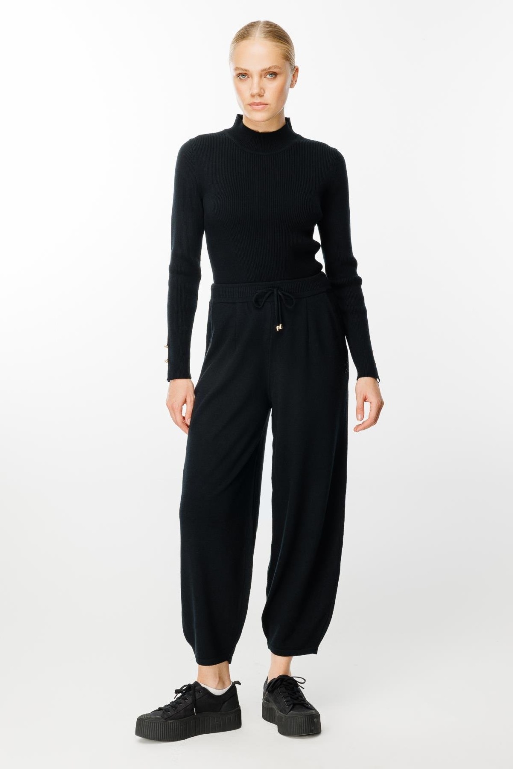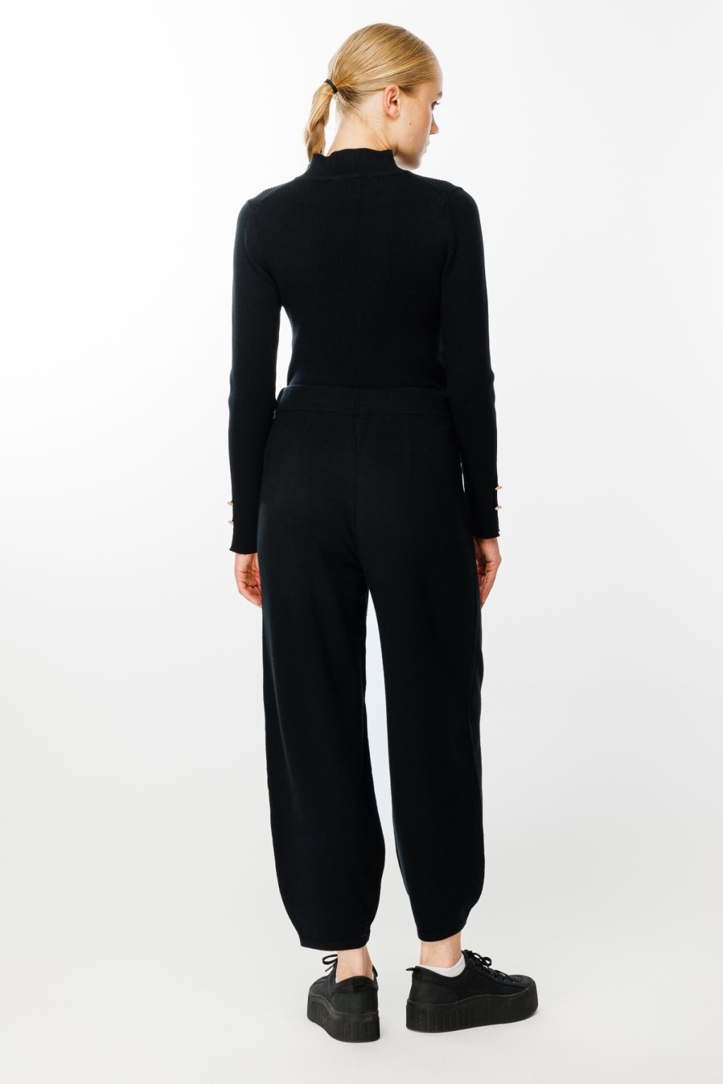 Belden bağlamalı paça detaylı cepli triko pantolon-