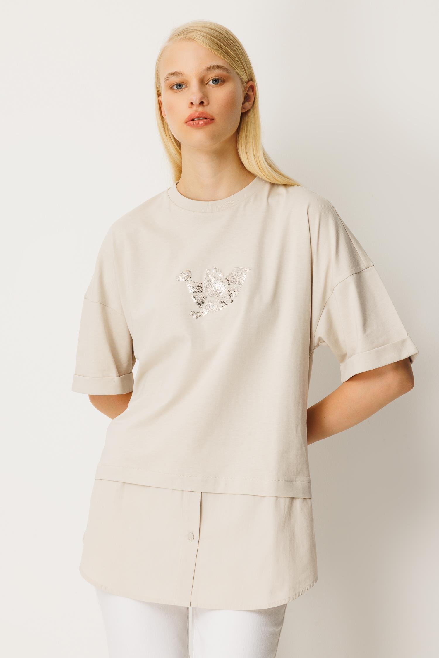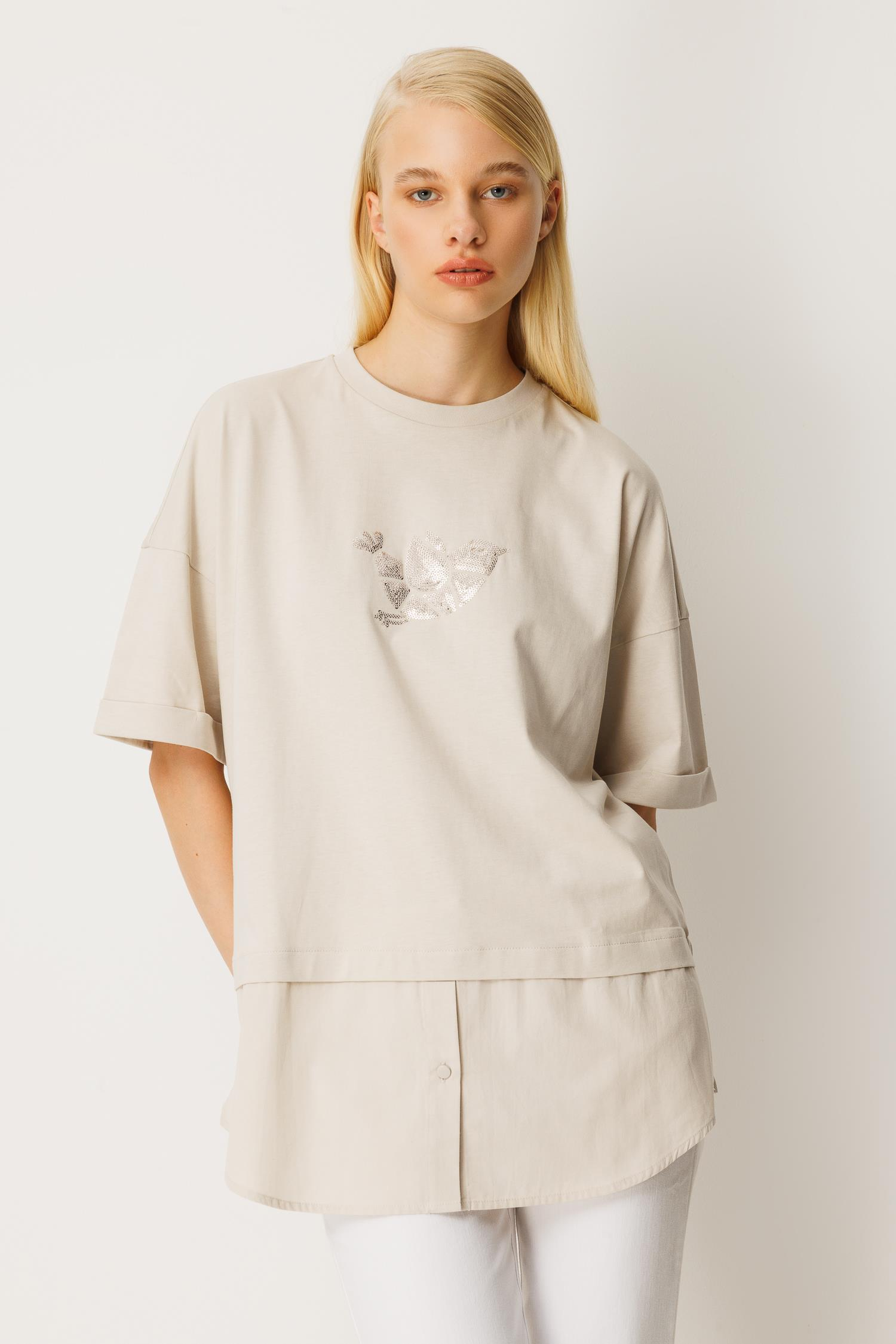 YENİ TIĞ TRİKO KADIN TAŞ BASKILI FİTİLLİ TRİKO TUNİK TNK.21779.1