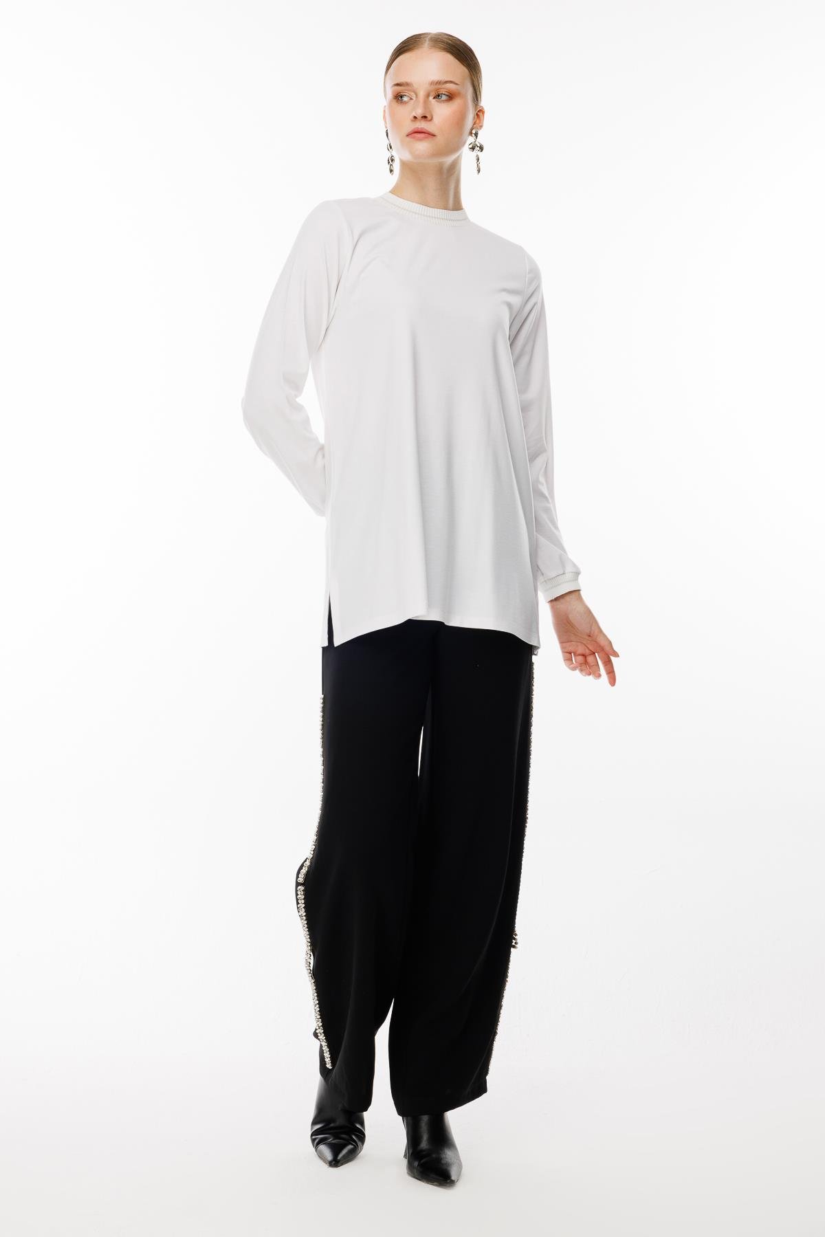 YENİ TIĞ TRİKO KADIN OMUZLARI TAŞ DETAYLI TUNİK 2025 KIŞ TNK.21656.1