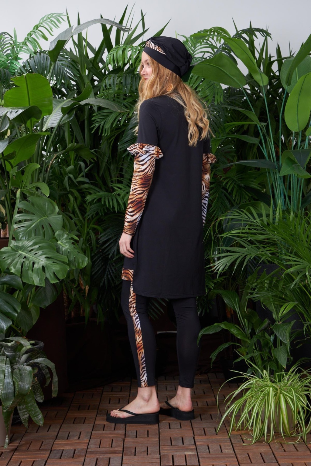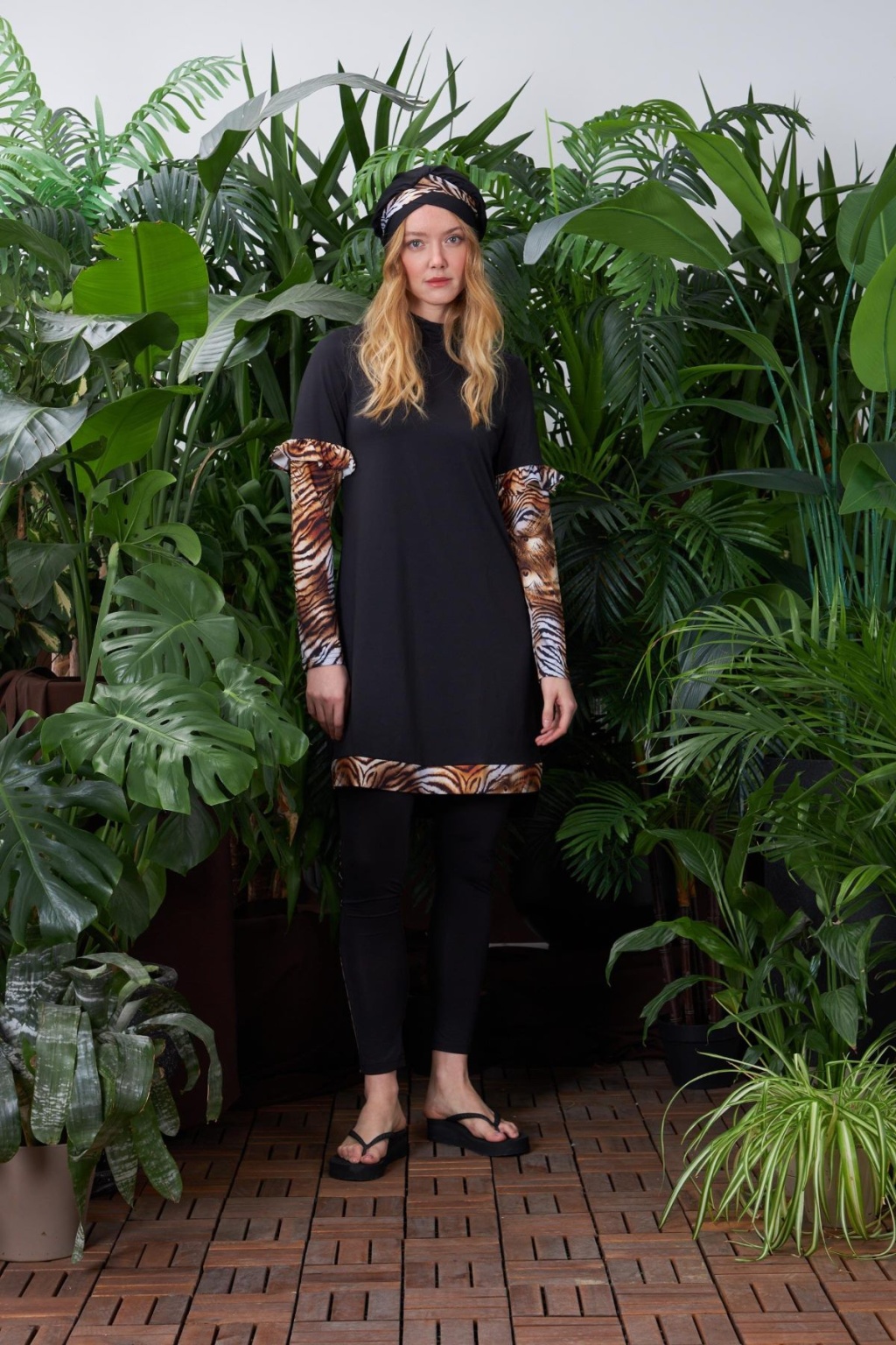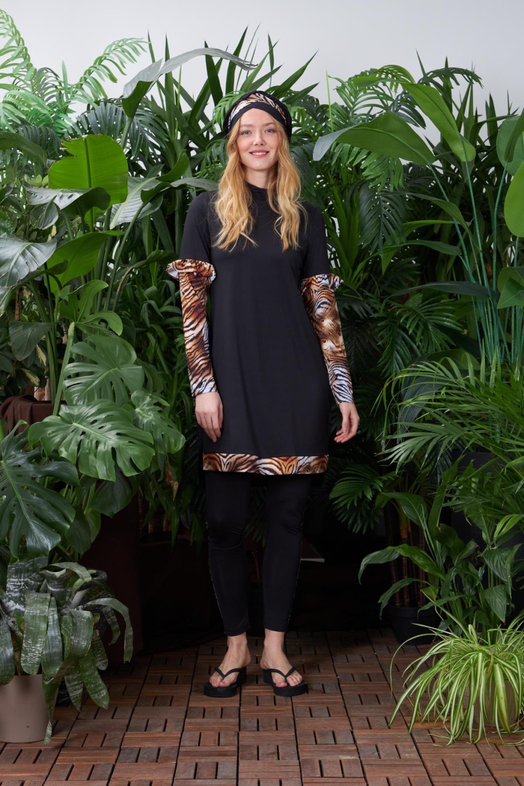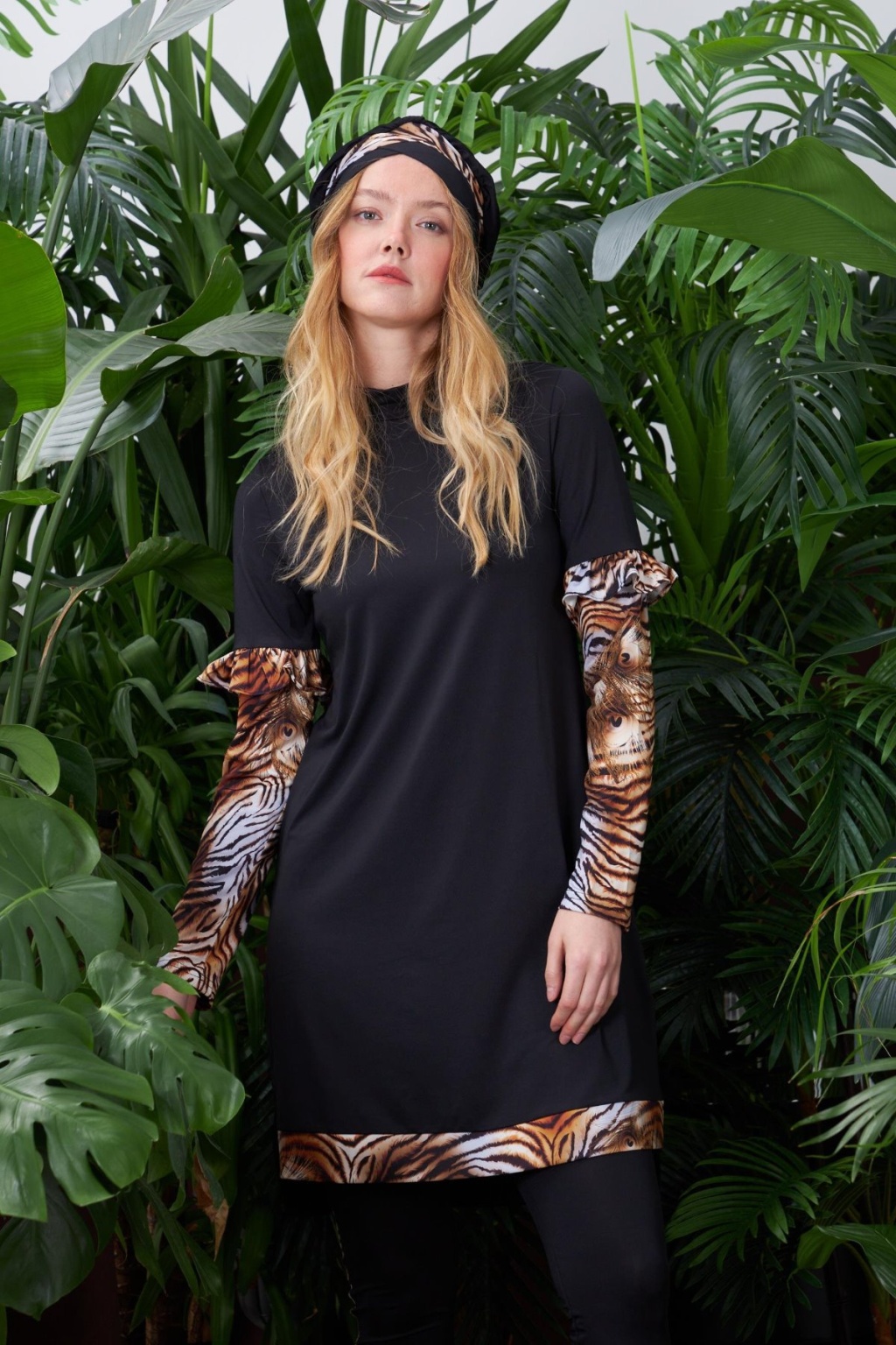 LEOPARLI TESETTÜR MAYO ÖLÇÜSÜ:GÖGÜS 94 CM, BEL 93 CM, KOL BOYU 62 CM, BEDEN BOYU 90 CM.TAYT ÖLÇÜSÜ:BEL 68 CM, BASEN 85 CM, BOY 103 CM' DİR.BEDENLER ARASINDA 4 CM FARK VARDIR.MODELDE 36 BEDEN KULLANILMIŞTIR. %100 POLYAMİD.