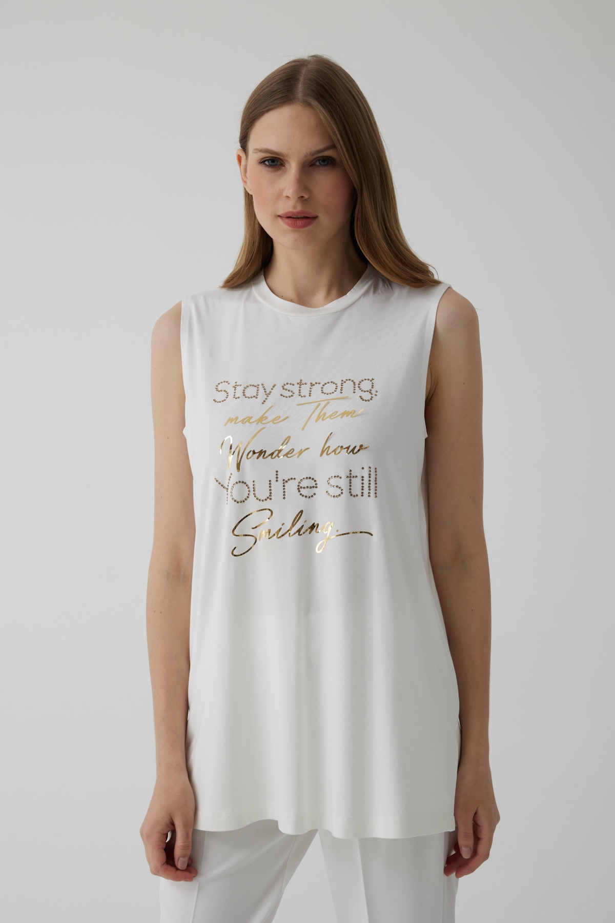 PARLAK BASKILI SIFIR KOL T-SHIRT