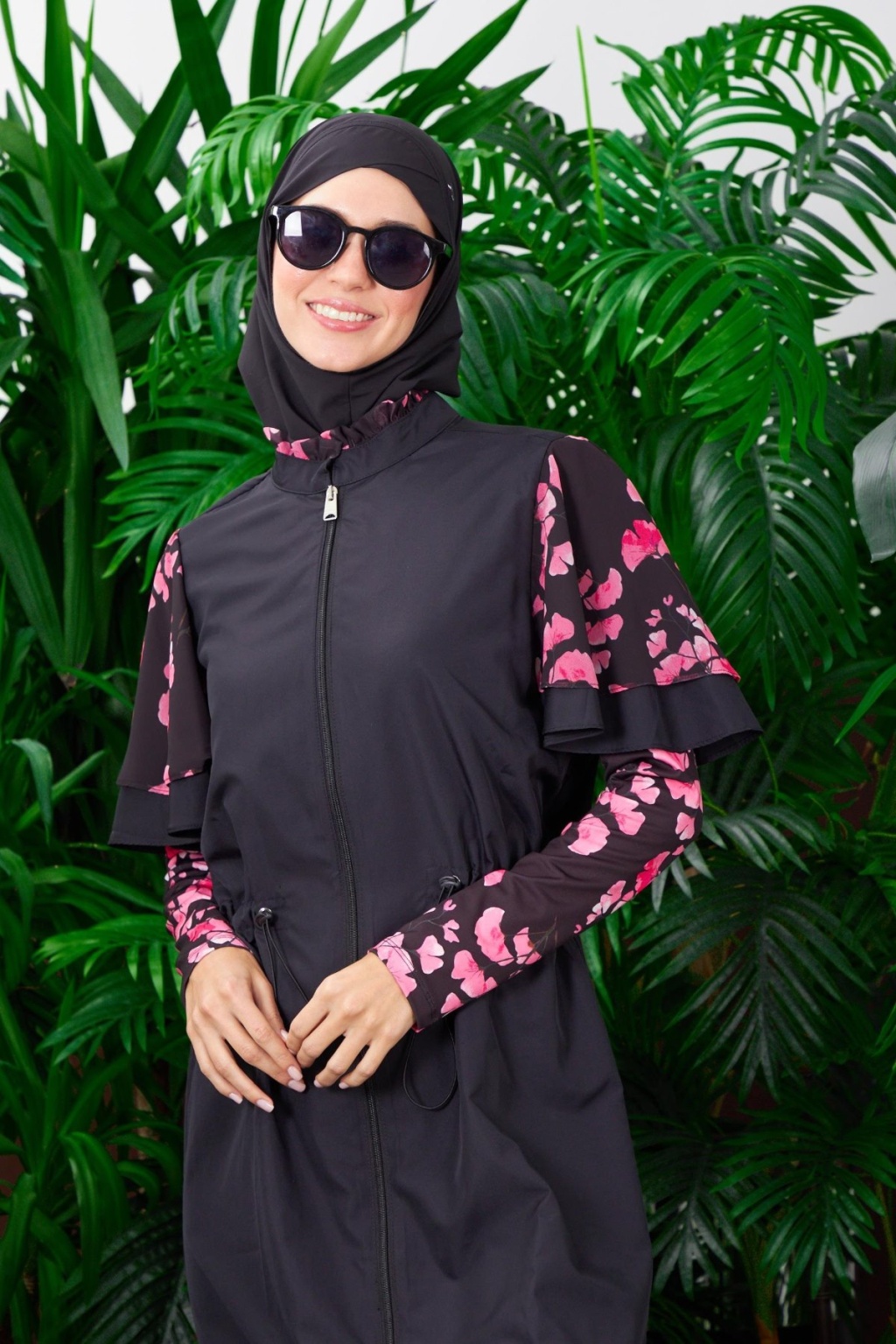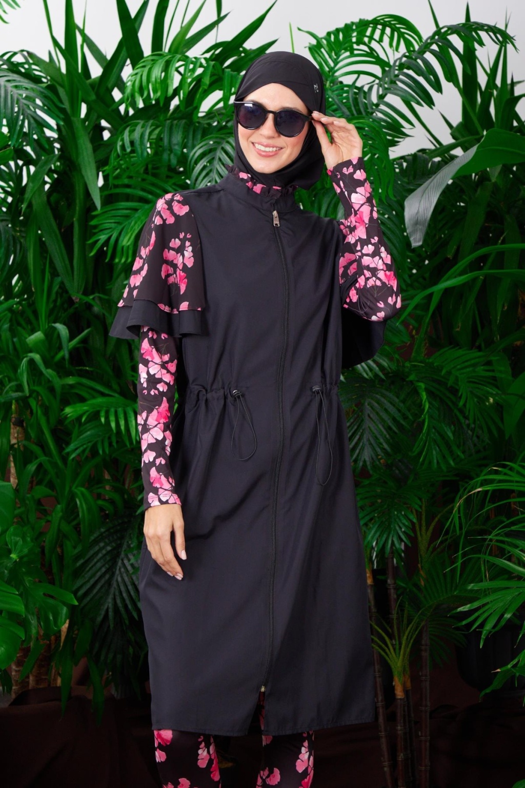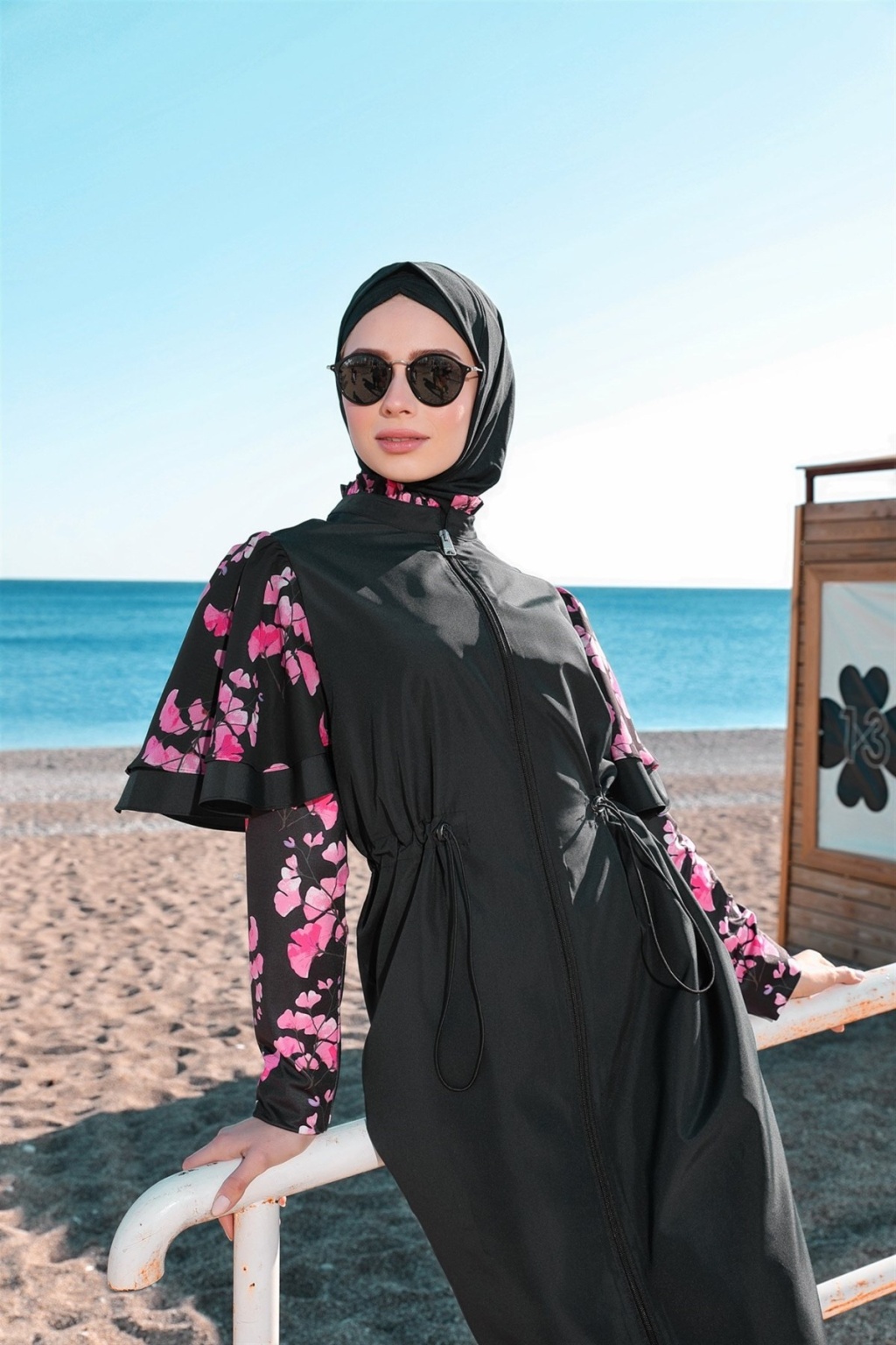 ŞİFON VOLANLI TESETTÜR MAYO ÖLÇÜSÜ:GÖGÜS 104 CM, BEL 108 CM, BASEN 114 CM, KOL BOYU 62 CM, BEDEN BOYU 110 CM.TAYT ÖLÇÜSÜ:BEL 68 CM, BASEN 85 CM, BOY 100 CM' DİR.BEDENLER ARASINDA 4 CM FARK VARDIR.MODELDE 36 BEDEN KULLANILMIŞTIR. %100 POLYAMİD
