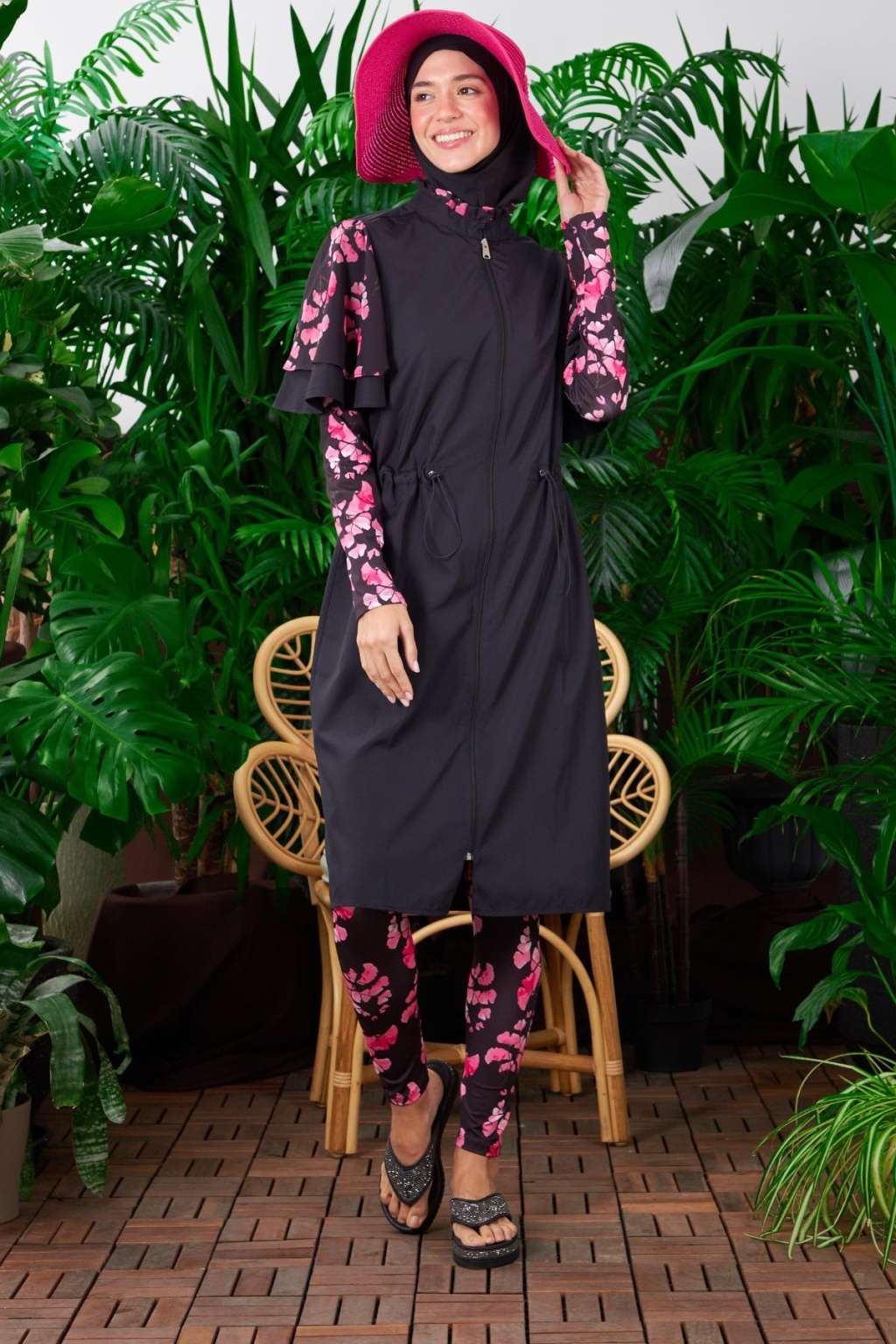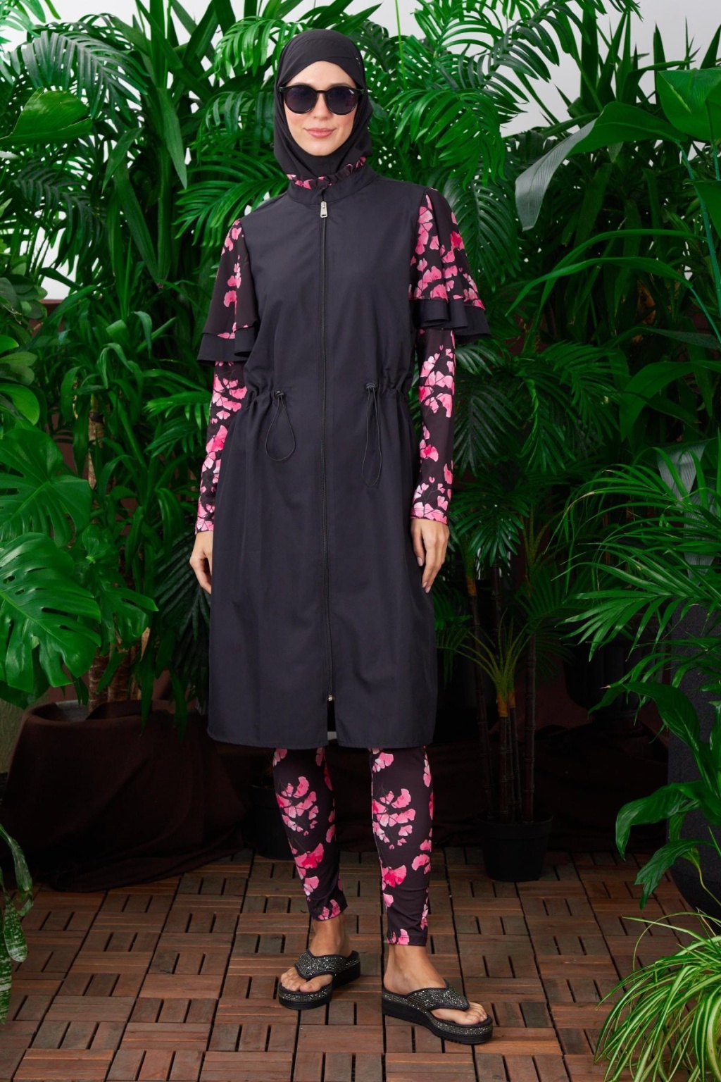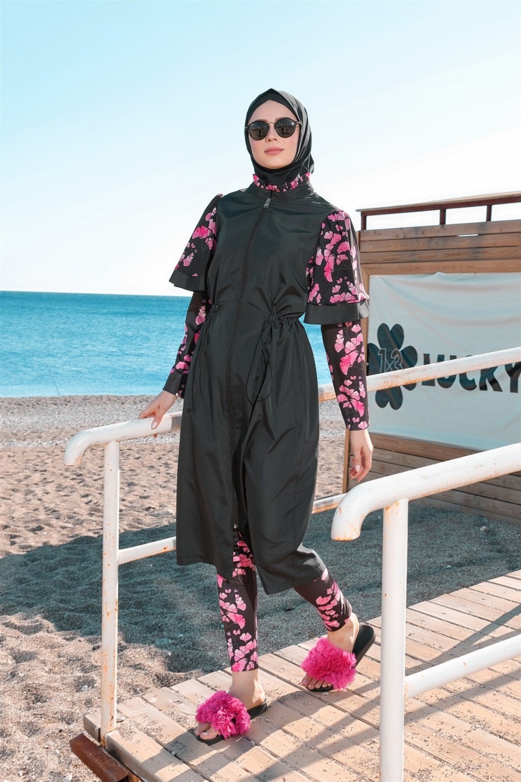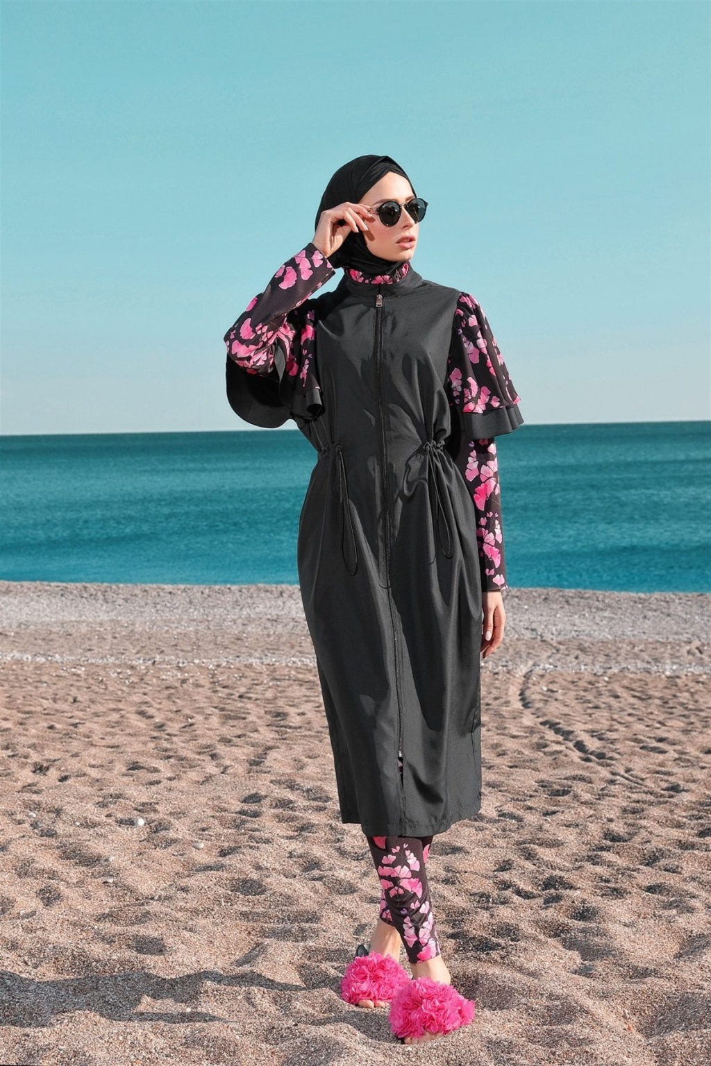 ŞİFON VOLANLI TESETTÜR MAYO ÖLÇÜSÜ:GÖGÜS 104 CM, BEL 108 CM, BASEN 114 CM, KOL BOYU 62 CM, BEDEN BOYU 110 CM.TAYT ÖLÇÜSÜ:BEL 68 CM, BASEN 85 CM, BOY 100 CM' DİR.BEDENLER ARASINDA 4 CM FARK VARDIR.MODELDE 36 BEDEN KULLANILMIŞTIR. %100 POLYAMİD