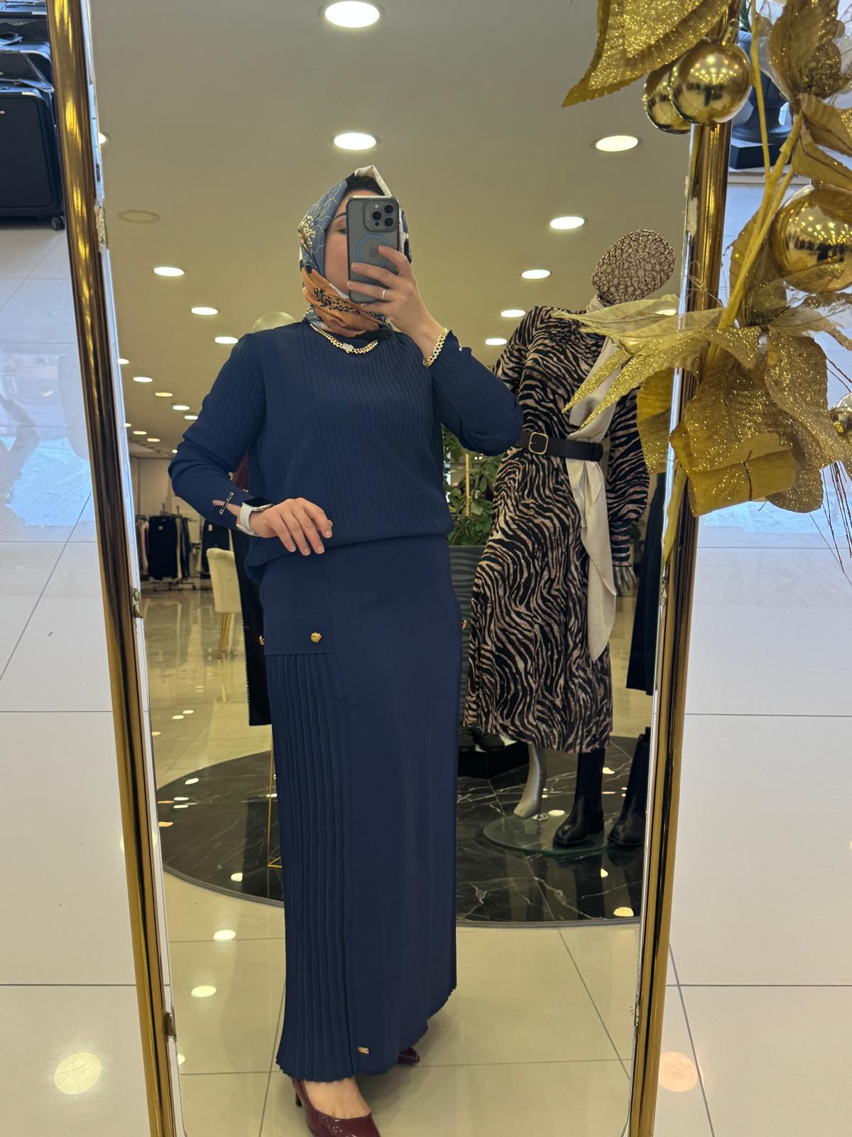 YENİ NİLİWİ KADIN YANLARI PİLELİ İNTERLOK ÖRGÜ ETEK 3092