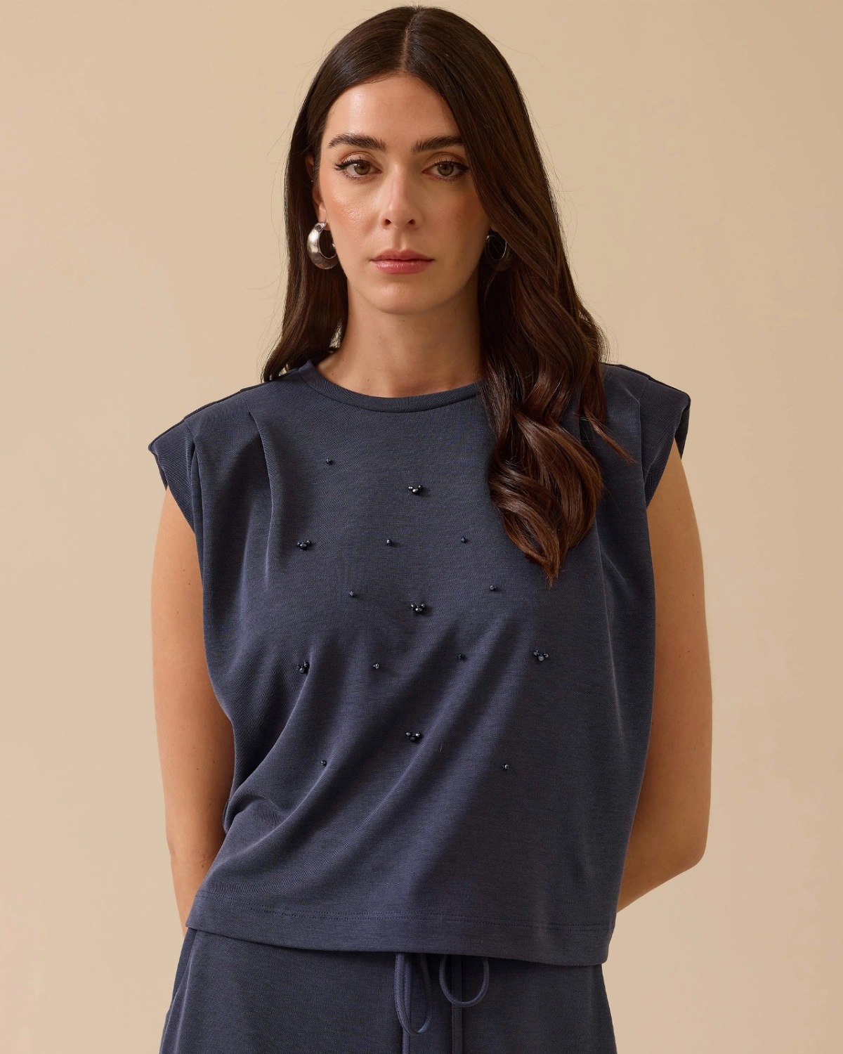 Boncuk Detaylı Vatkalı Bluz, omuzdaki vatka yapısı ve parlak boncuk süslemeleriyle modern bir duruş sergiler.