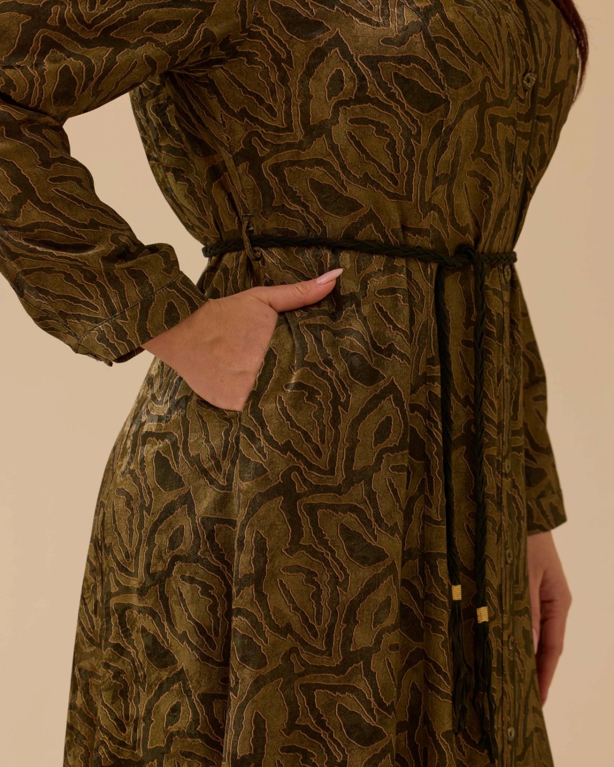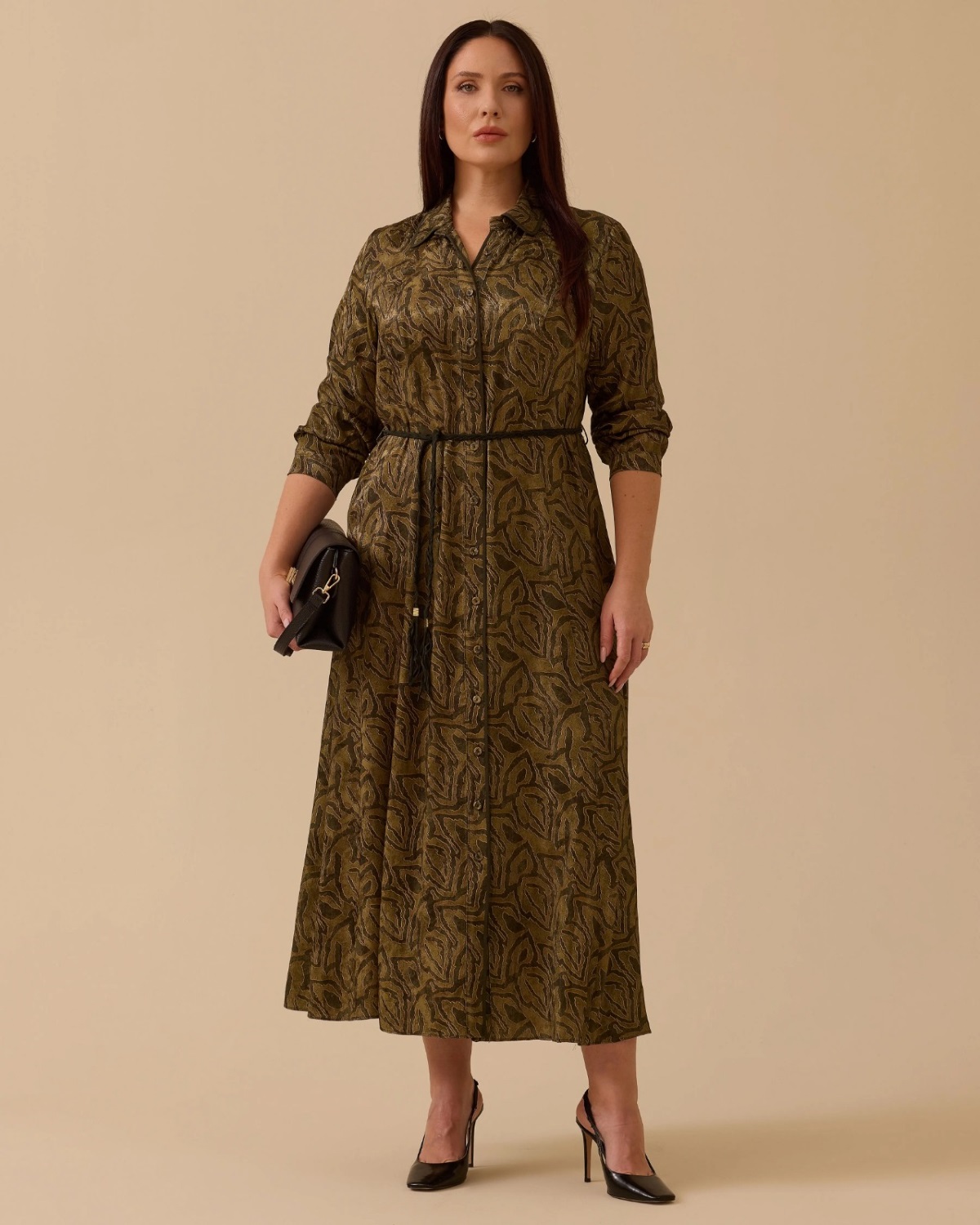 Büyük Beden Kuşaklı Desenli Elbise, şık desenleri ve ayarlanabilir kuşağıyla konforlu ve zarif bir görünüm sunar.