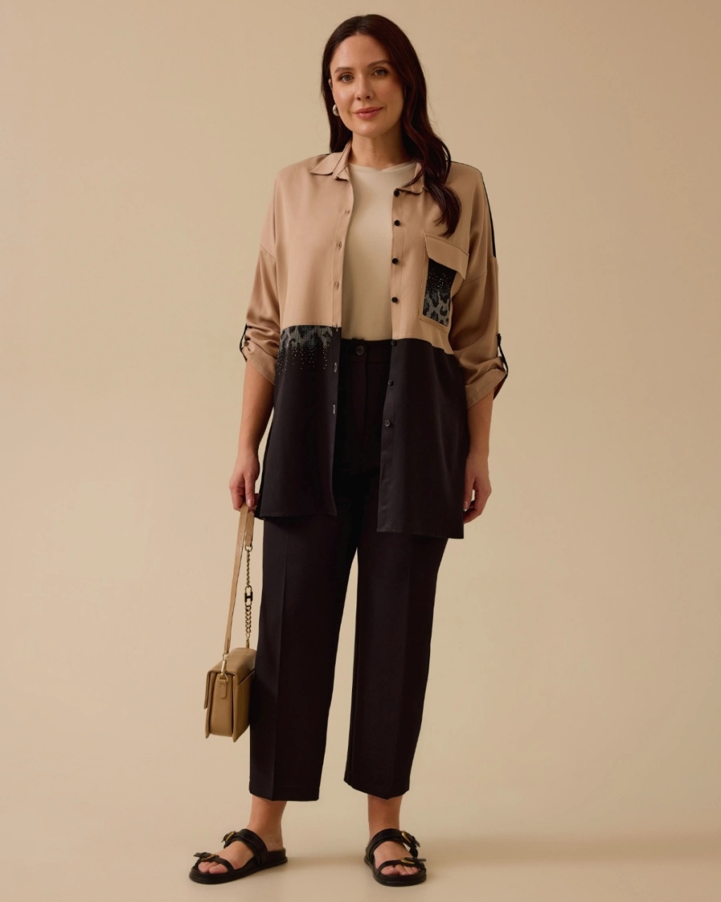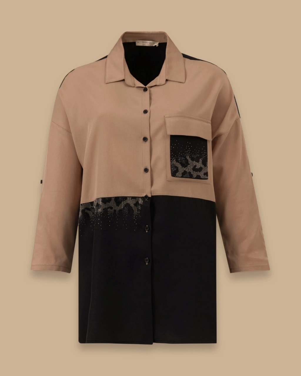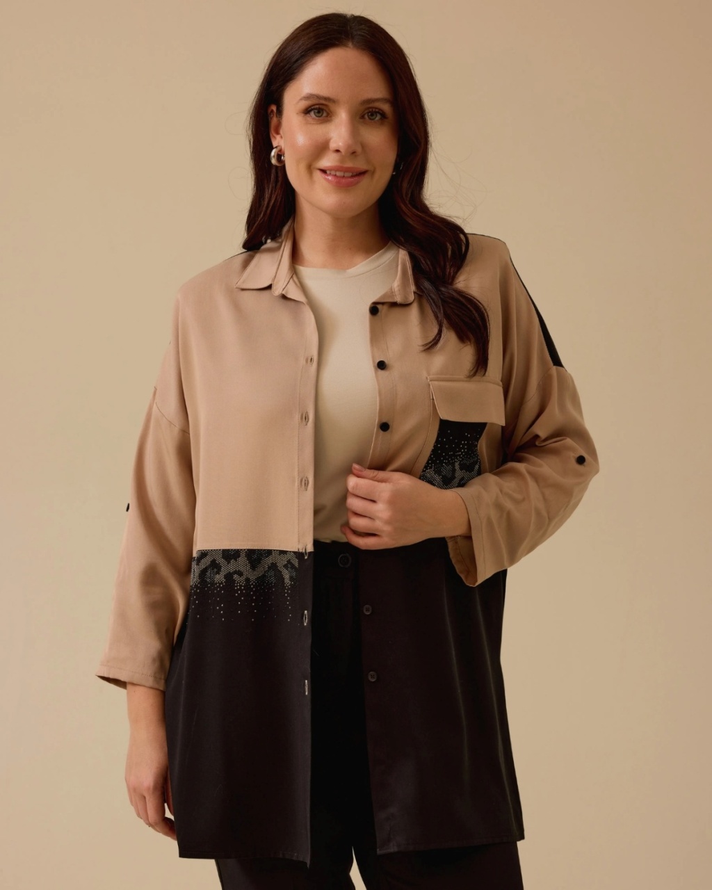 Büyük Beden Taş Detaylı Düğmeli Tunik, şık taş detayları ve düğmeli tasarımıyla göz alıcı bir görünüm sunar. Hem özel günlerde hem de günlük kullanım için idealdir.