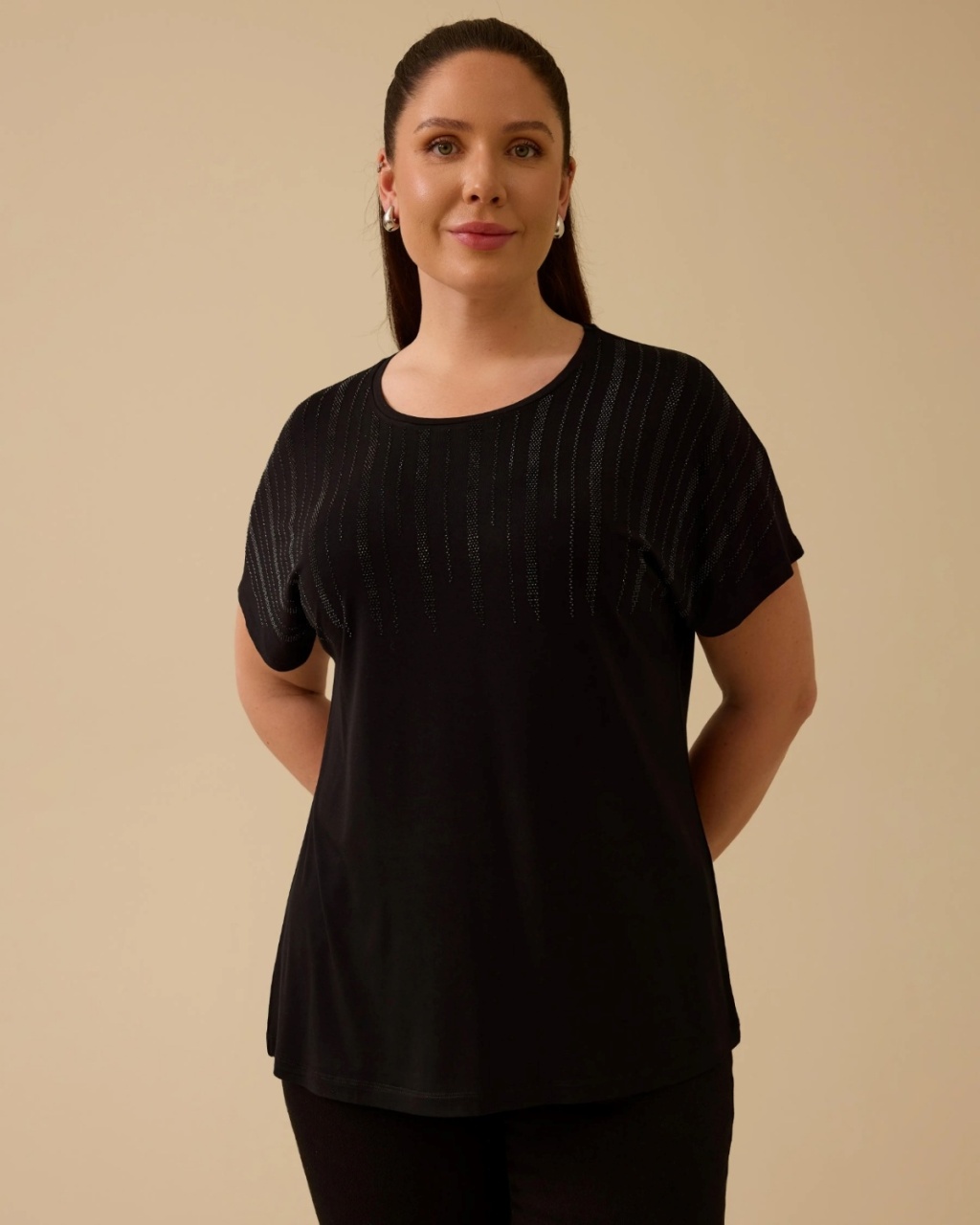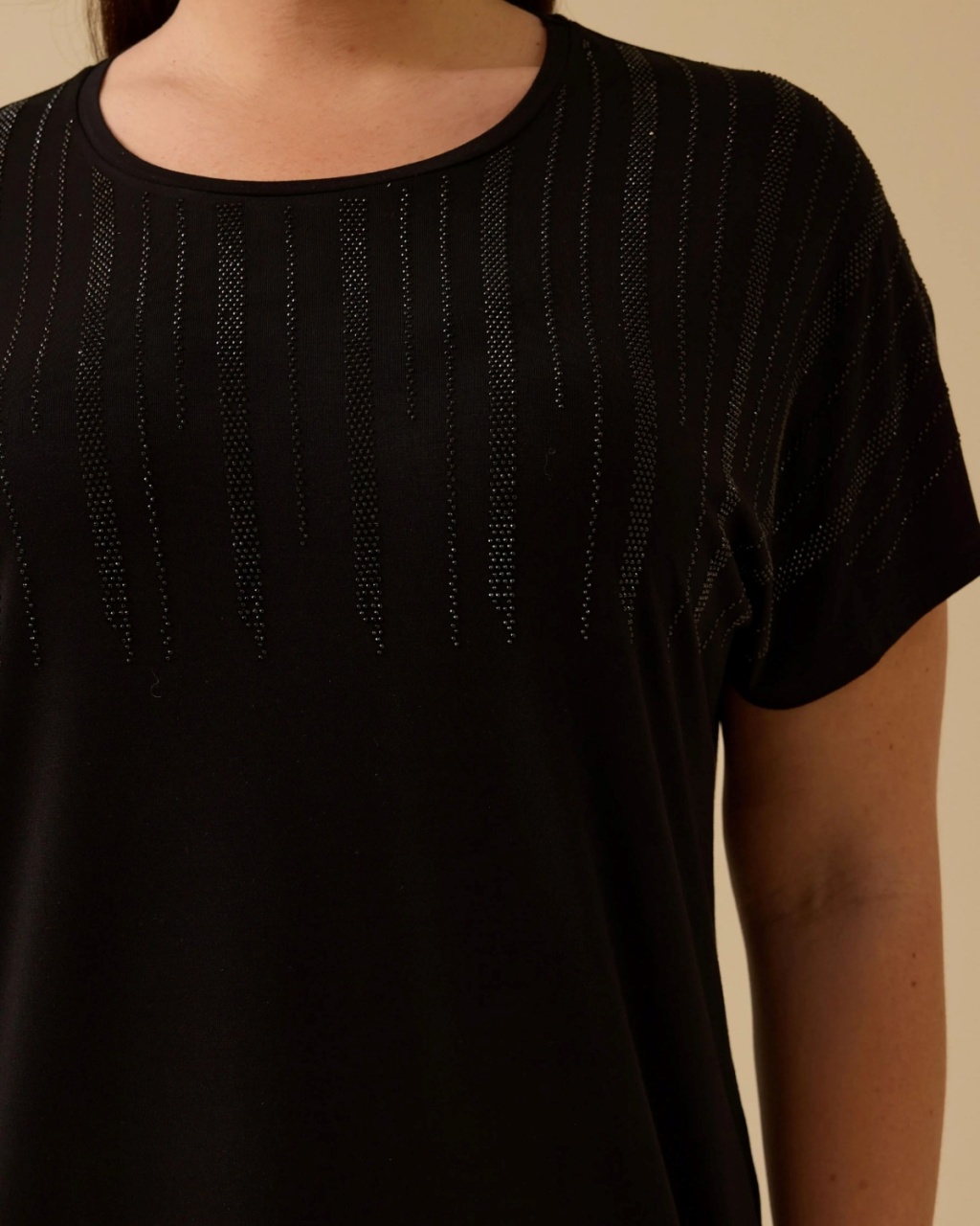 Büyük Beden Taşlı Kısa Kollu Tişört, zarif taş detaylarıyla şıklığı ve rahatlığı bir araya getirir. Günlük kombinlerinizde rahatlıkla tercih edebilirsiniz.