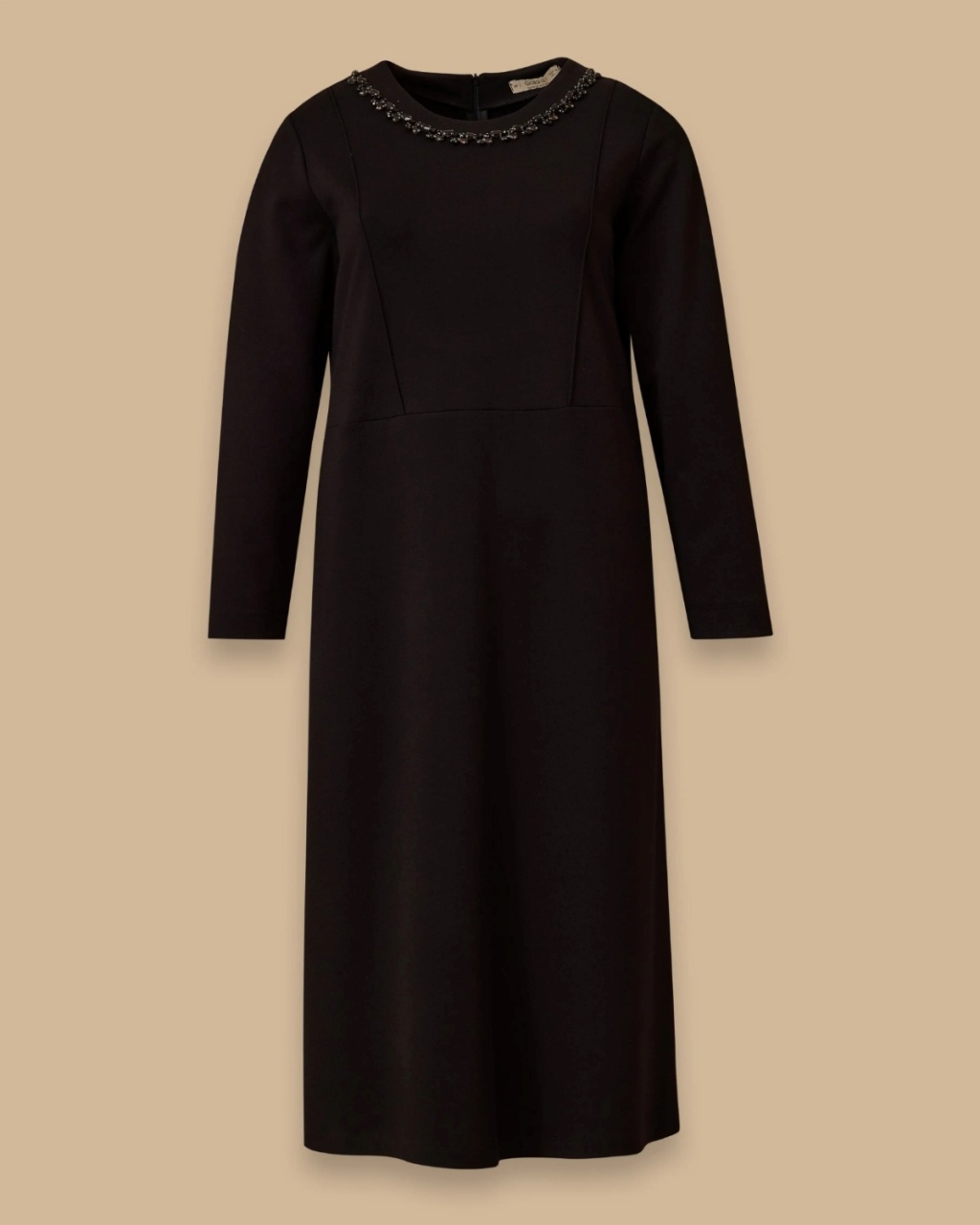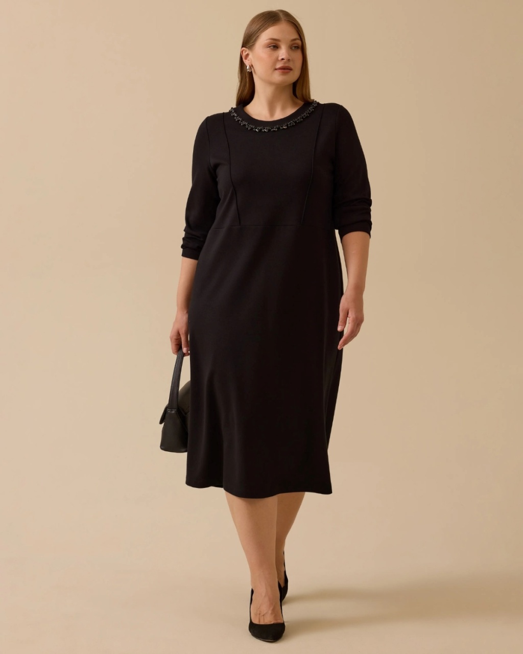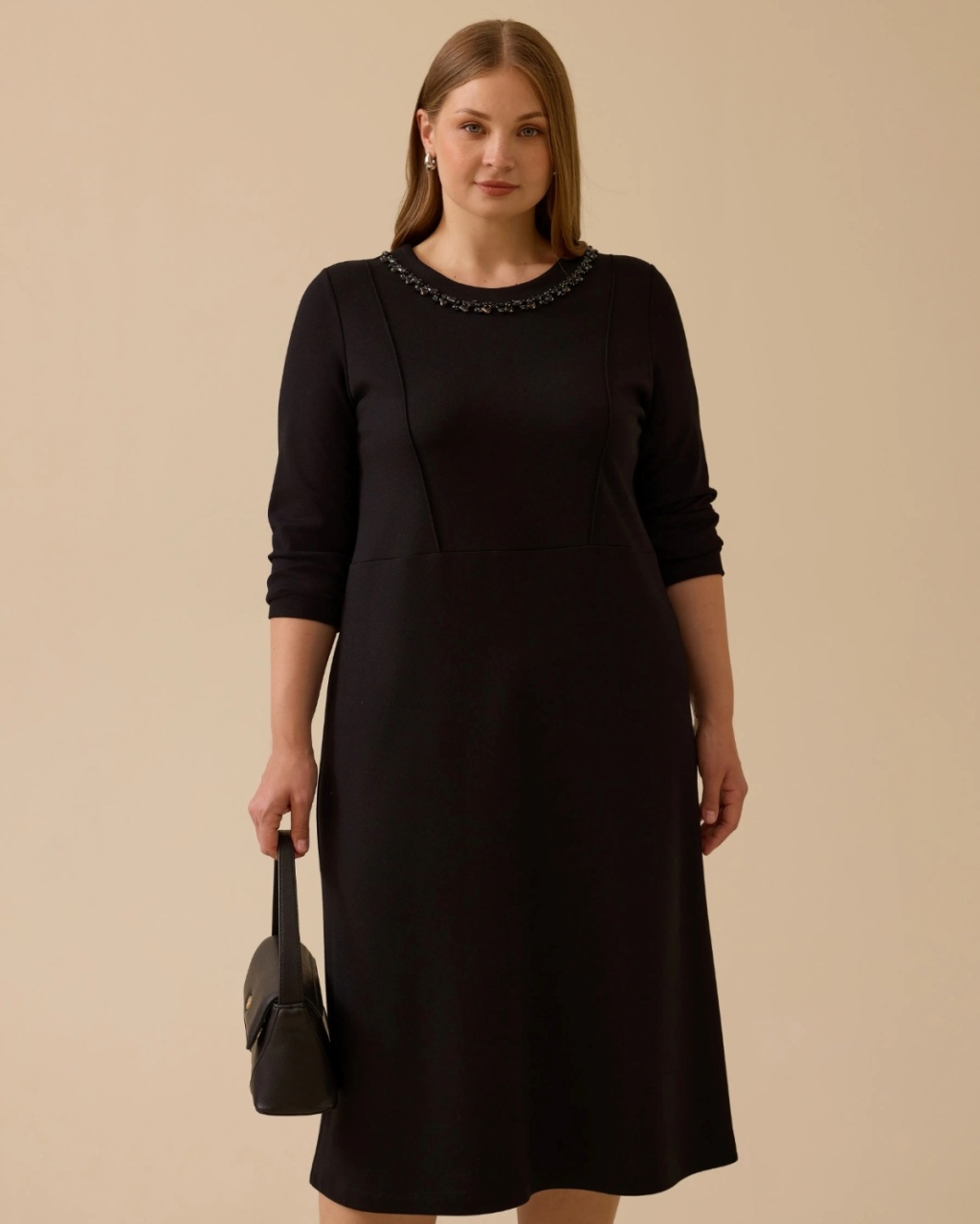 Büyük Beden Taşlı Yaka Detaylı Elbise, zarif tasarımıyla özel davetler için ideal seçimdir.