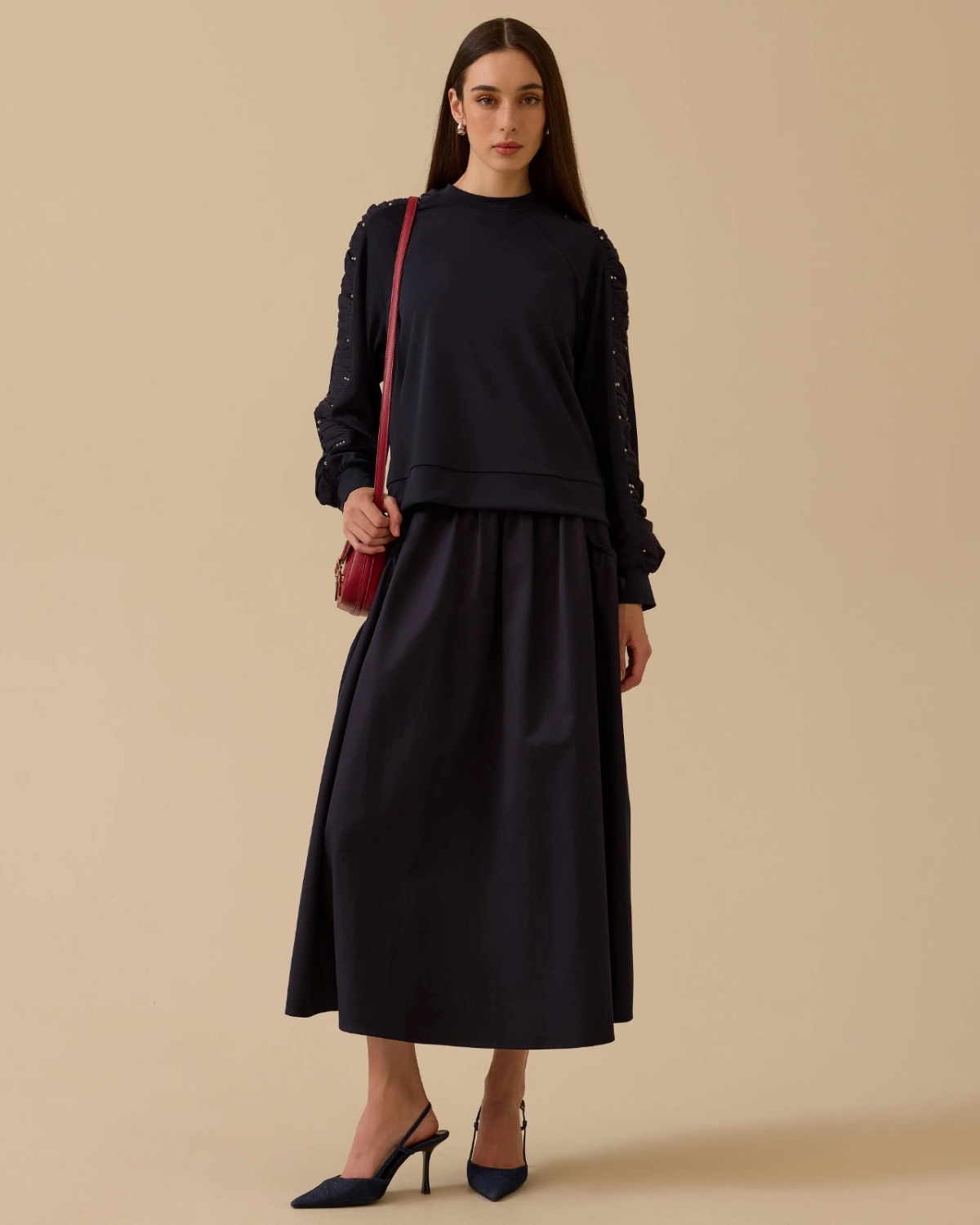Büzgü Detaylı Midi Etek, zarif büzgü tasarımı ve midi boy kesimiyle feminen bir stil sunar.