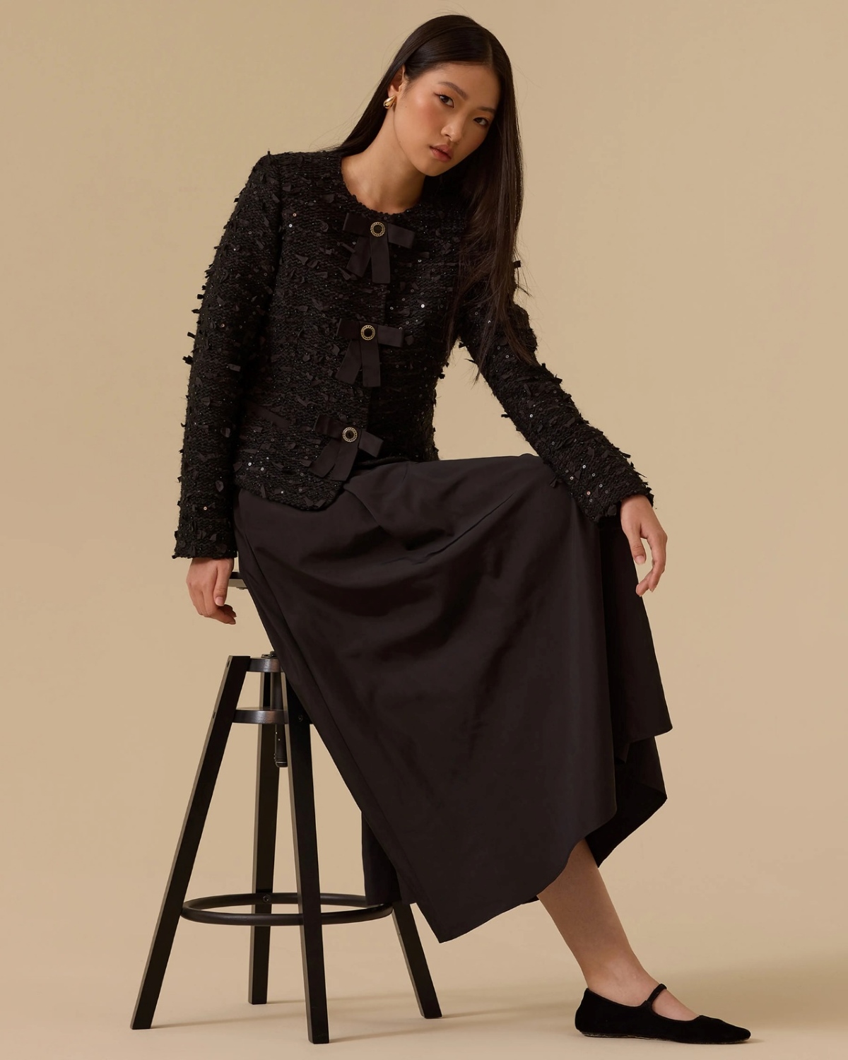 Cepli Kloş Etek, rahat kalıbı ve hareketli formuyla günlük kombinlere zarif bir dokunuş katar.