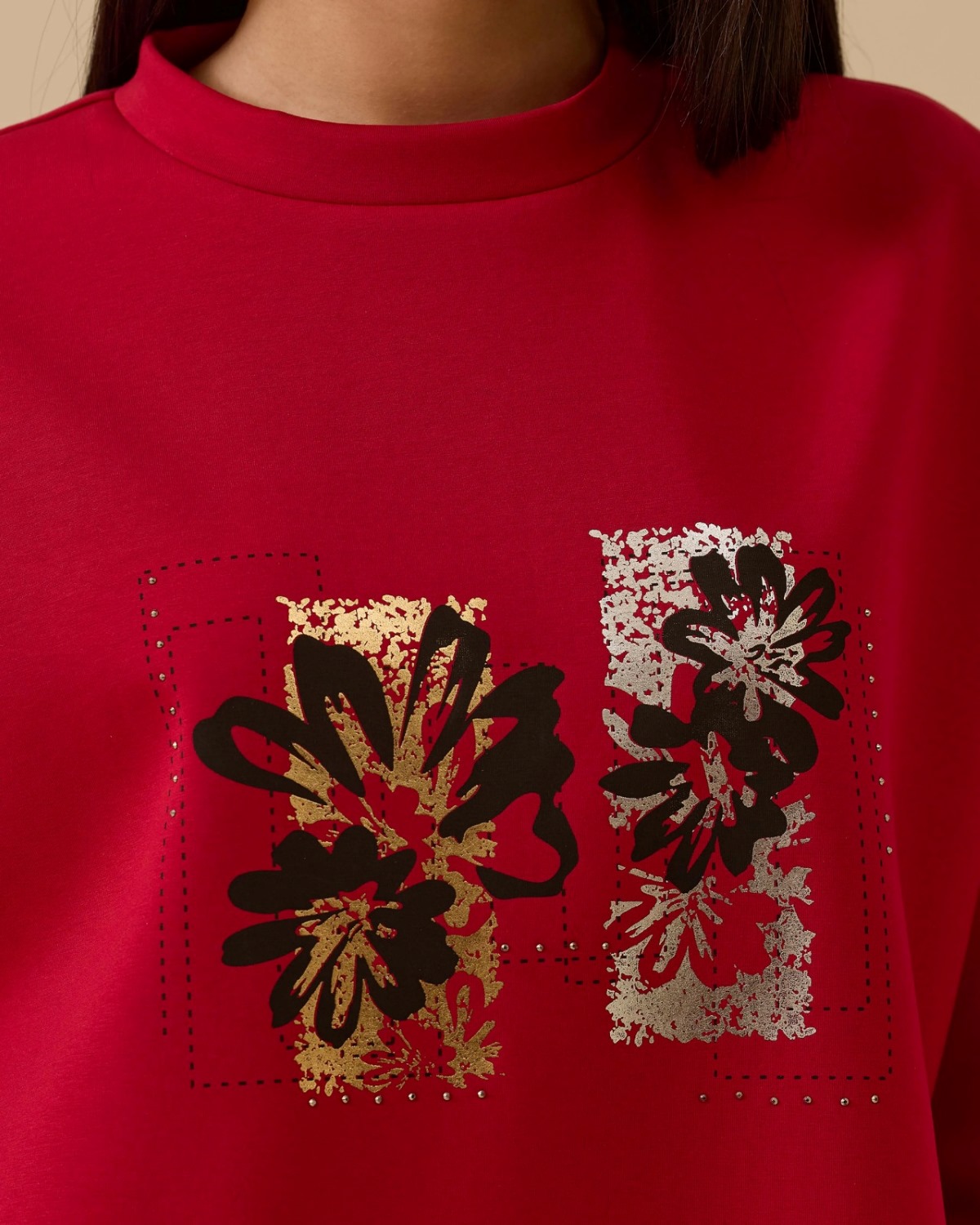 Çiçek Baskılı Sweatshirt, modern deseniyle enerjik bir stil sunar, rahat ve şık kombinler oluşturur.