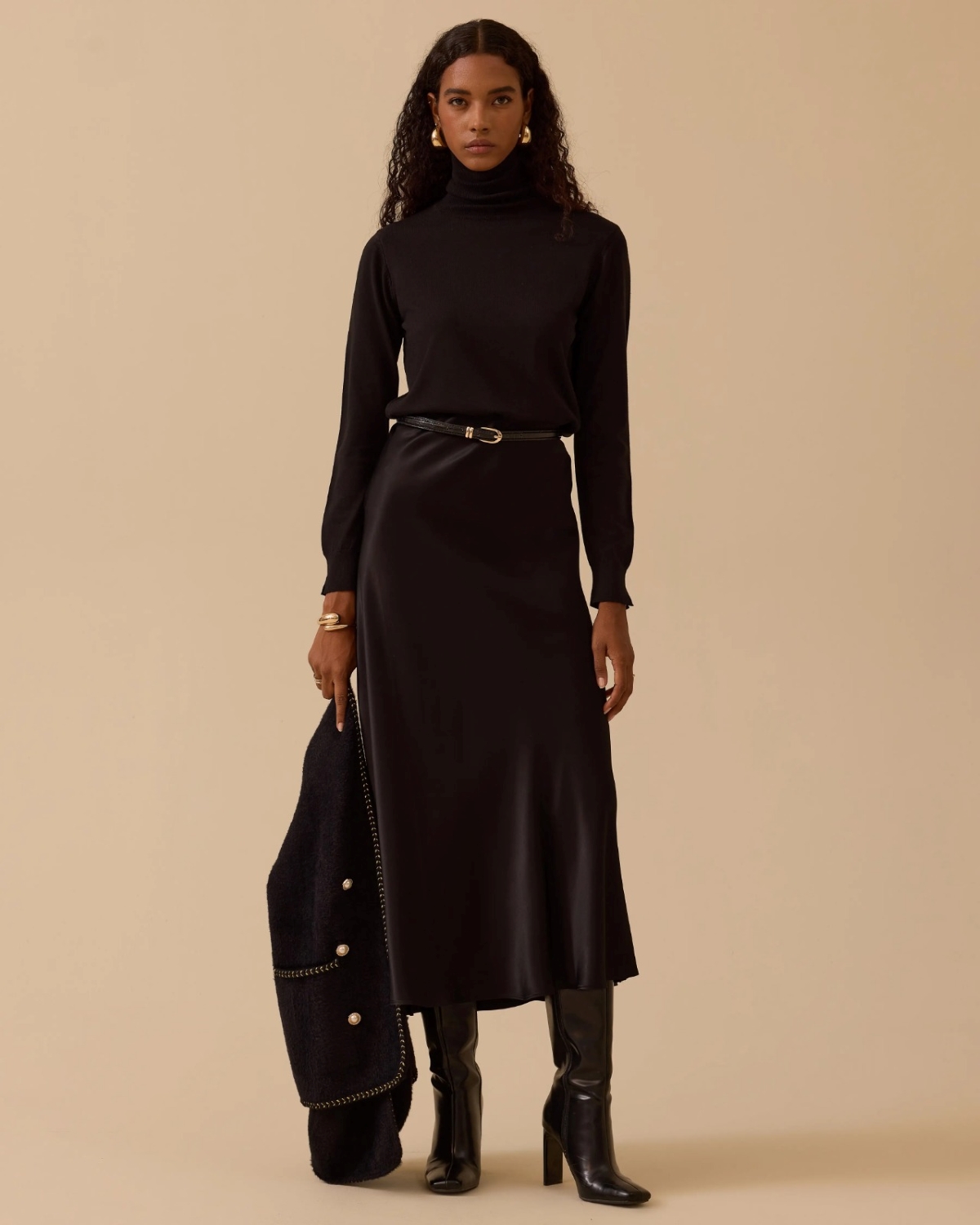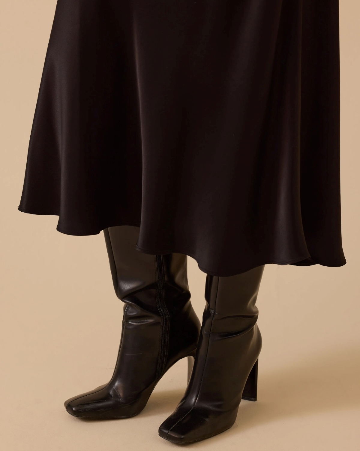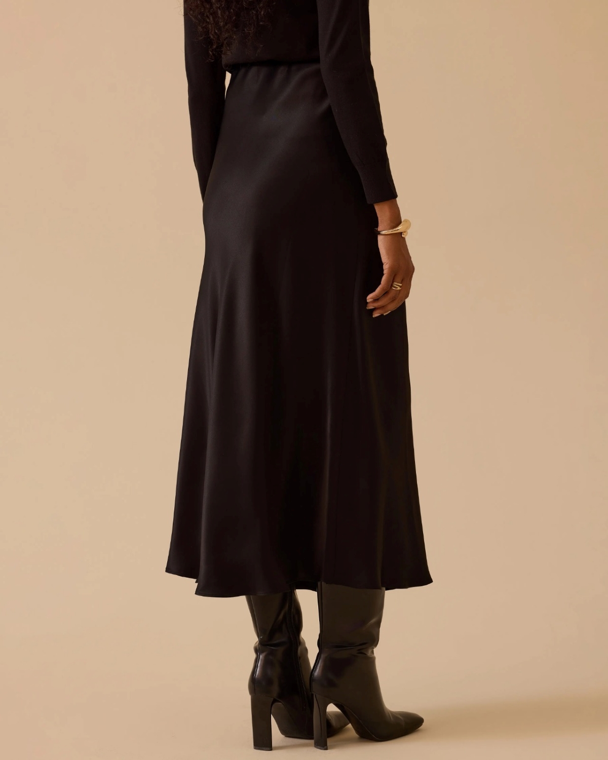 Düz Kesim Saten Etek, yumuşak dokusu ve dökümlü yapısıyla feminen ve zarif bir siluet oluşturur.