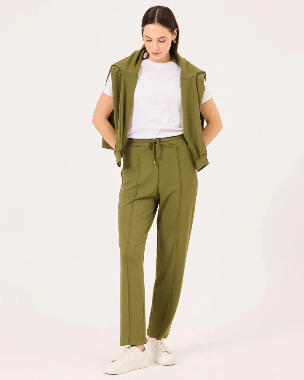 Elastik Bel Cepli Bilek Boy Pantolon, rahat yapısı ve cepli tasarımıyla günlük stilinizi tamamlar. Bilek boyu ile modern bir görünüm sunar, her kombinle uyum sağlar.