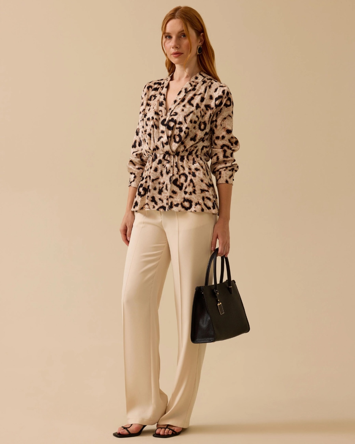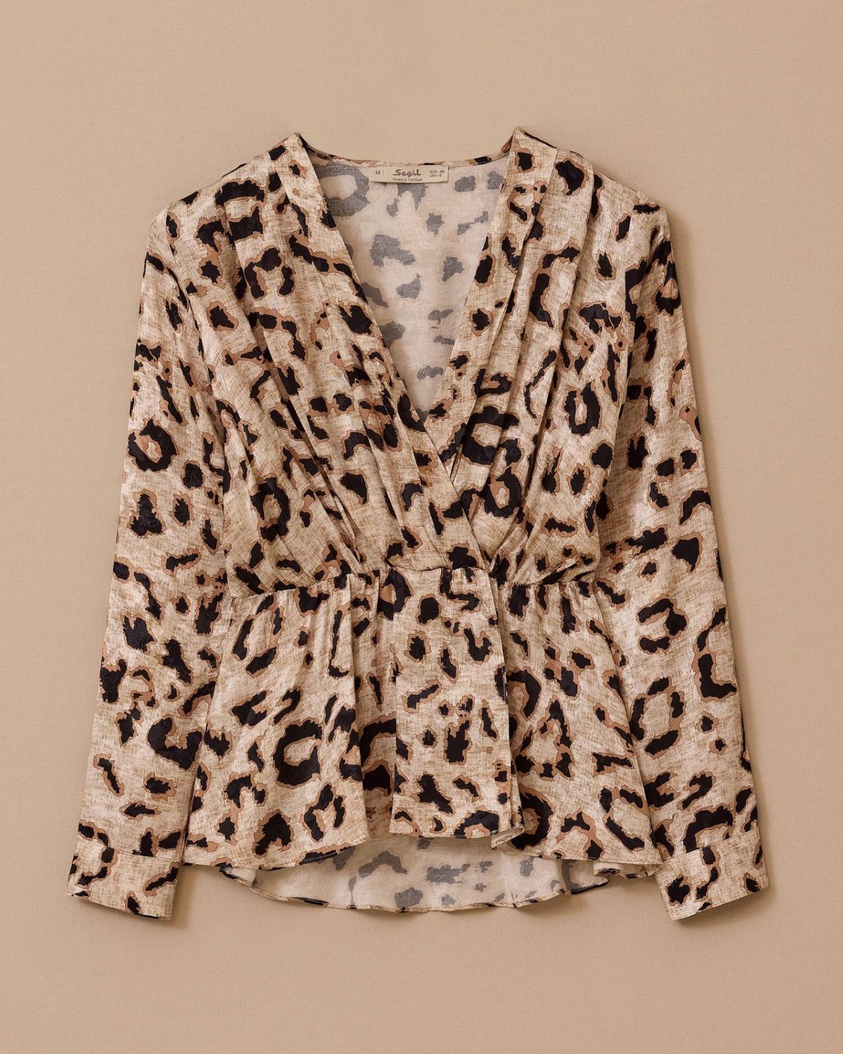 Kruvaze Yaka Desenli Elastik Bel Bluz, desenli yapısıyla dikkat çeker. Elastik beliyle gün boyu konfor sunar.