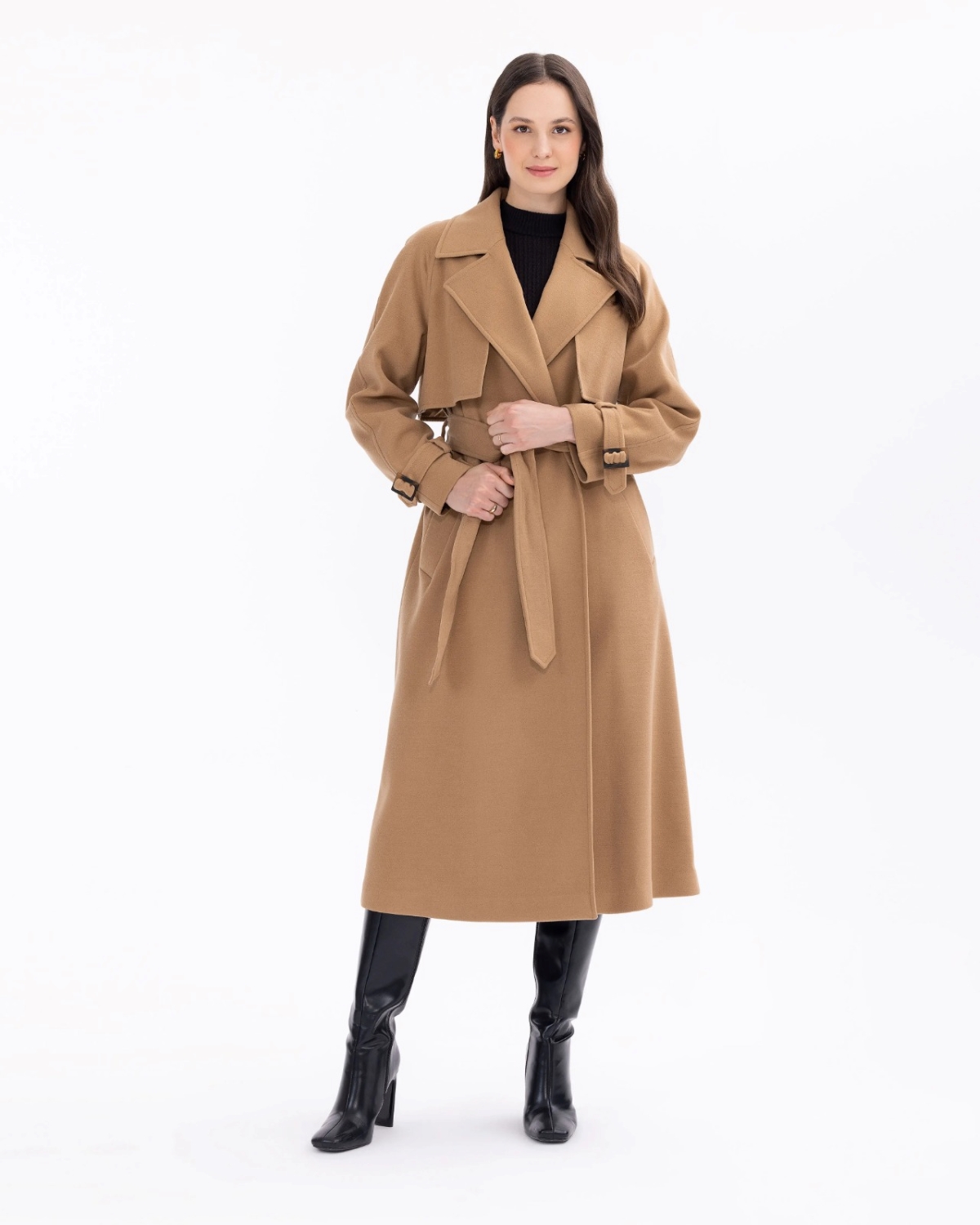 Bu şık kruvaze yakalı kaban, beli vurgulayan incelikteki kemer detayı ile öne çıkıyor. Orta boyu sayesinde soğuk havalarda sıcak tutarken aynı zamanda şıklığından ödün vermiyor. Her durumda şık ve zarif bir seçenek sunar, gardırobunuzun vazgeçilmezi olacak.