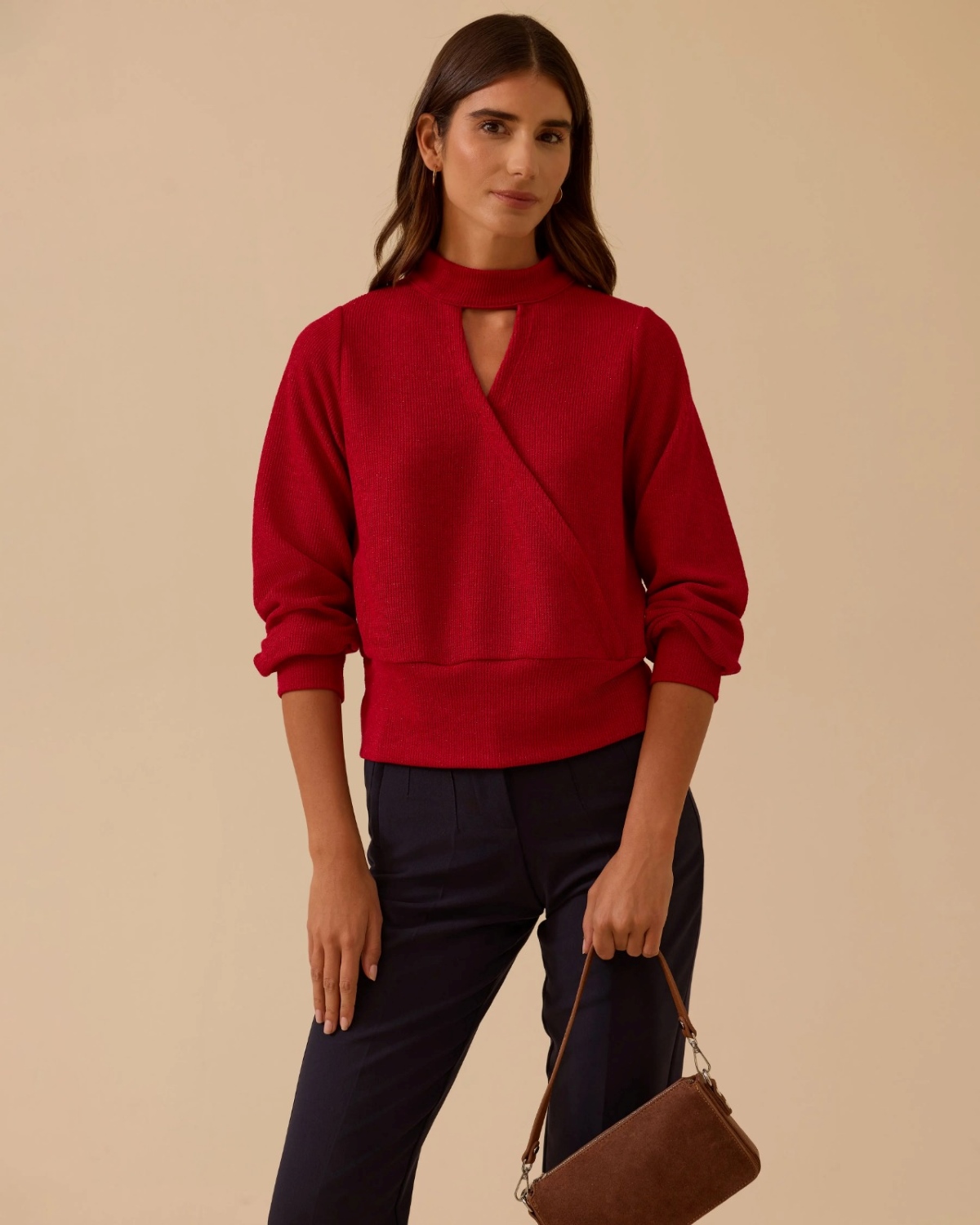 Pencere Detaylı Dik Yaka Triko Bluz, modern tasarımı ve şık görünümüyle hem ofis hem günlük stile uyum sağlar.