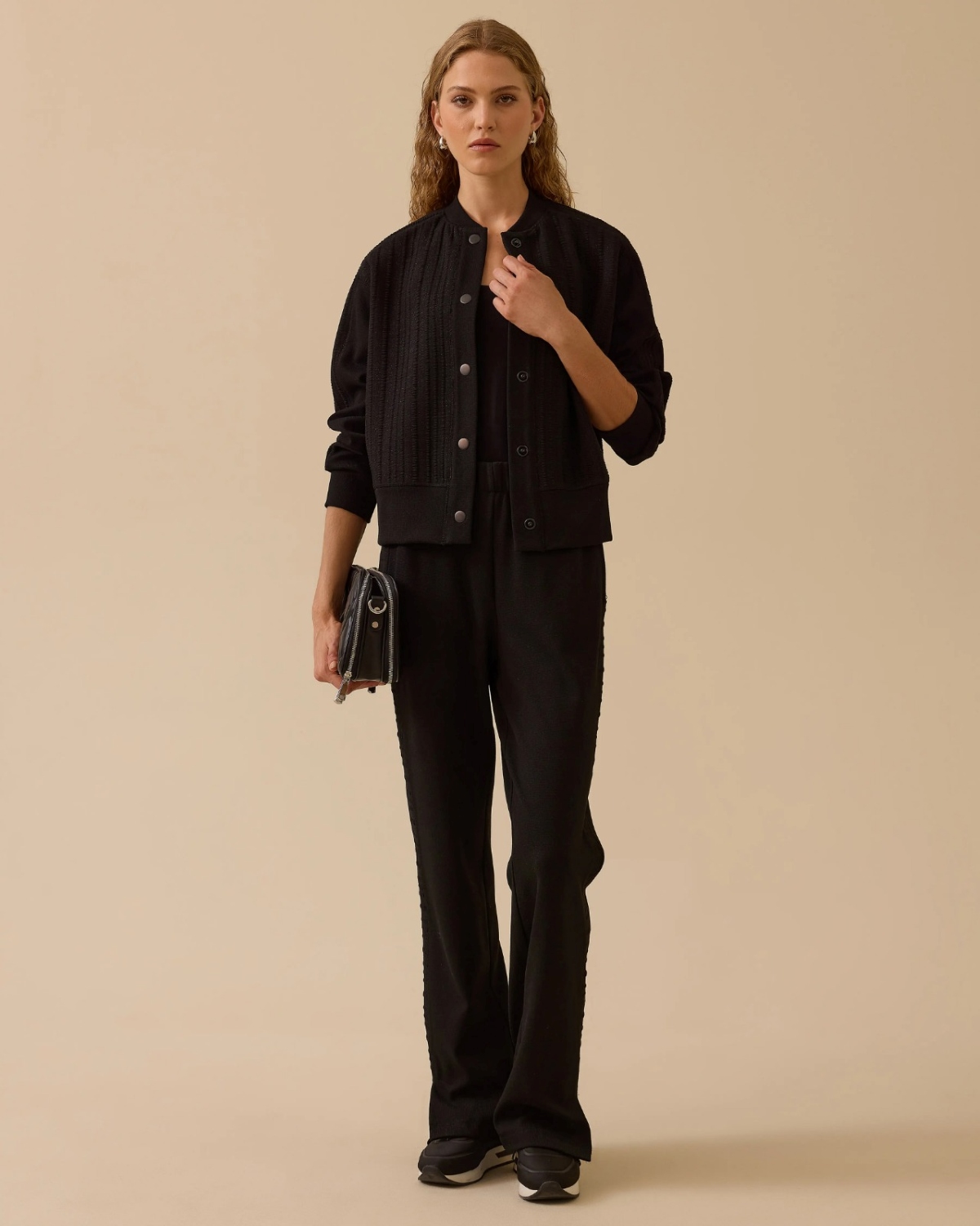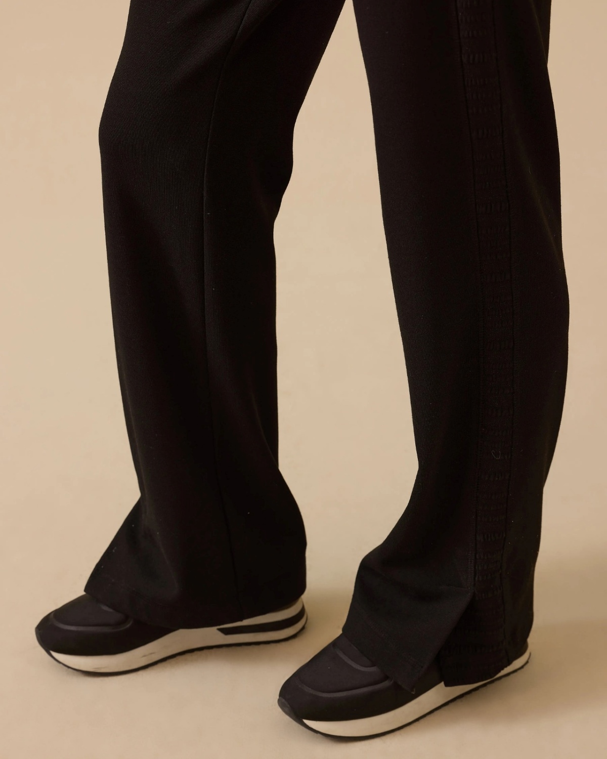 Yan Dokulu Yırtmaçlı Pantolon, modern kesimi ve yan şerit detaylarıyla şıklık sunar.