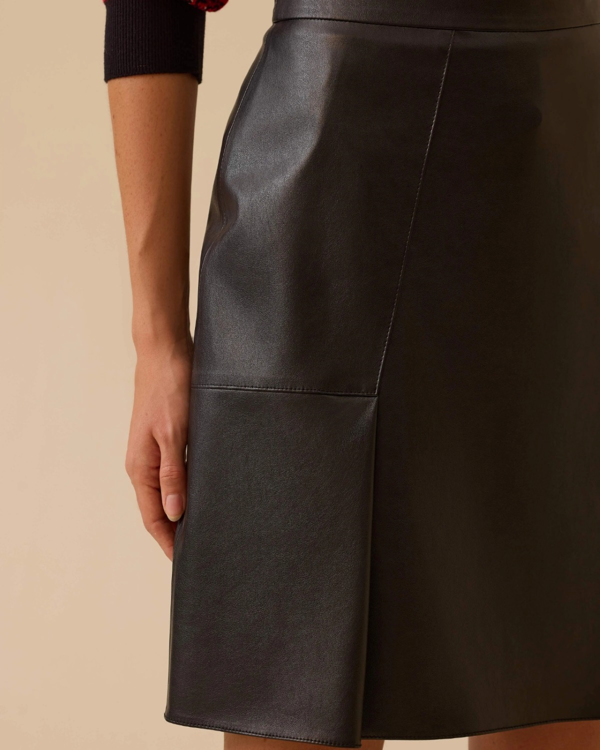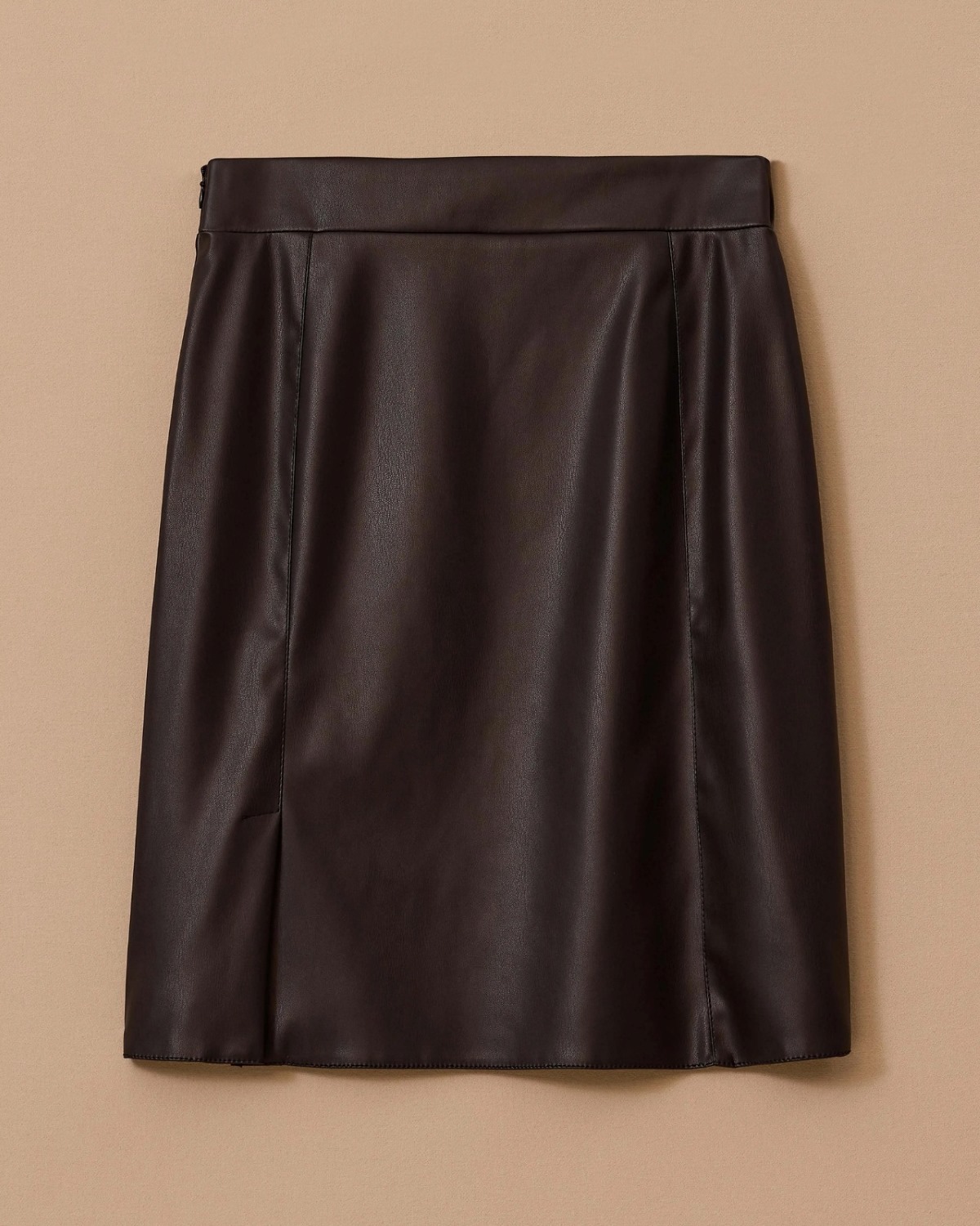 Yırtmaç Detaylı Suni Deri Etek, şık duruşu ve modern tasarımıyla stil sahibi kombinler yaratır