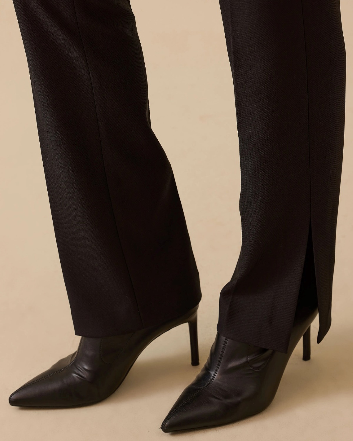 Yüksek Bel Paça Yırtmaçlı Tam Boy Pantolon, paça yırtmaç detayıyla şıklığı ve rahatlığı bir arada sunar.