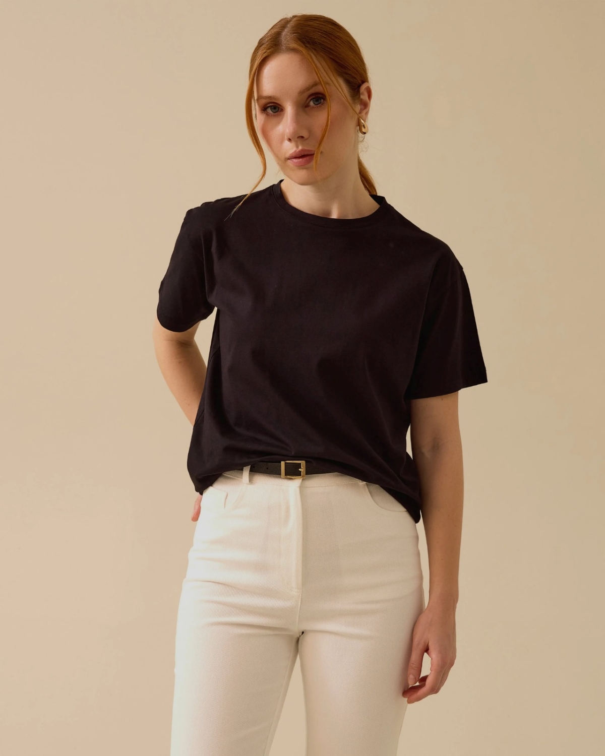 Yuvarlak Yaka Kısa Kollu Tişört, hafif ve rahat yapısıyla gün boyu konfor sunar, sade tasarımıyla her kombine uyum sağlar.
