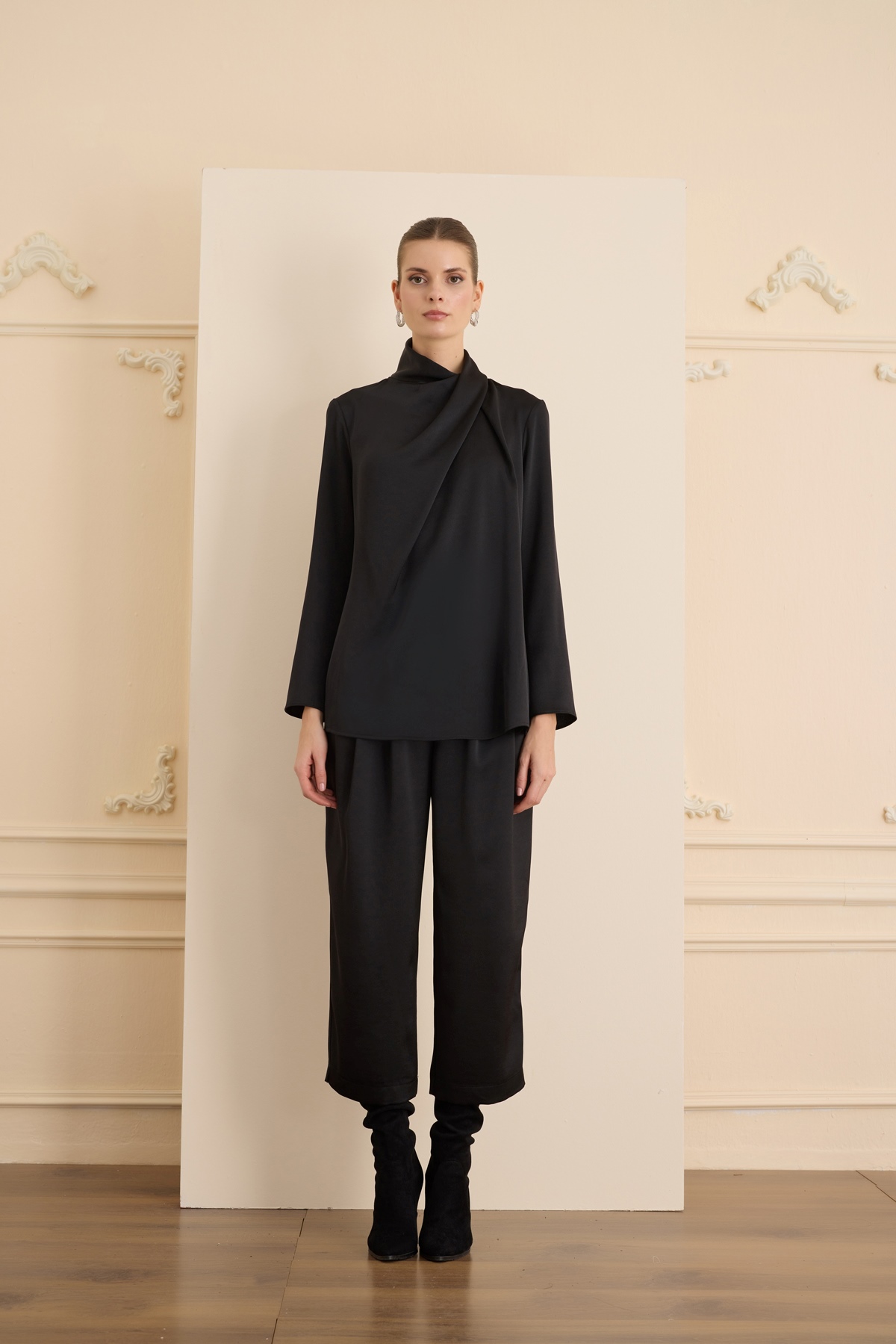 YENİ SEÇİL KADIN suni deri biyeli bol paça pantolon 10002521011015