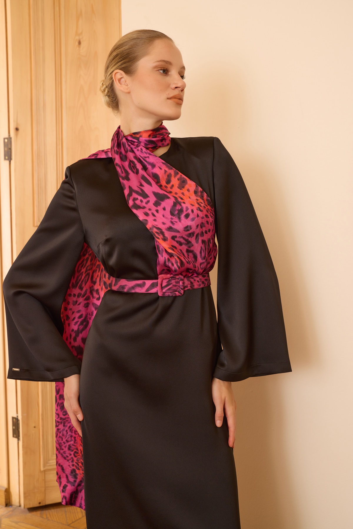 YENİ SEÇİL KADIN zebra desenli kemerli elbise 10002521310016
