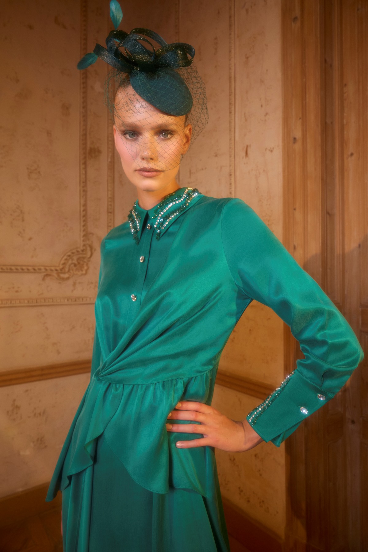 YENİ FUAT GÜRŞEN KADIN BELDEN BAĞCIKLI İŞLEME DETAYLI ELBİSE 25K4102