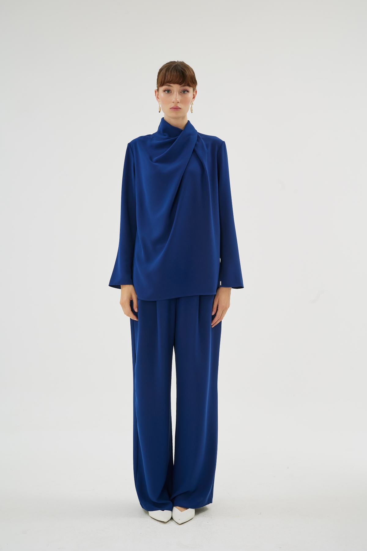 YENİ SEÇİL KADIN dik yaka drape detaylı bluz 10002521810004