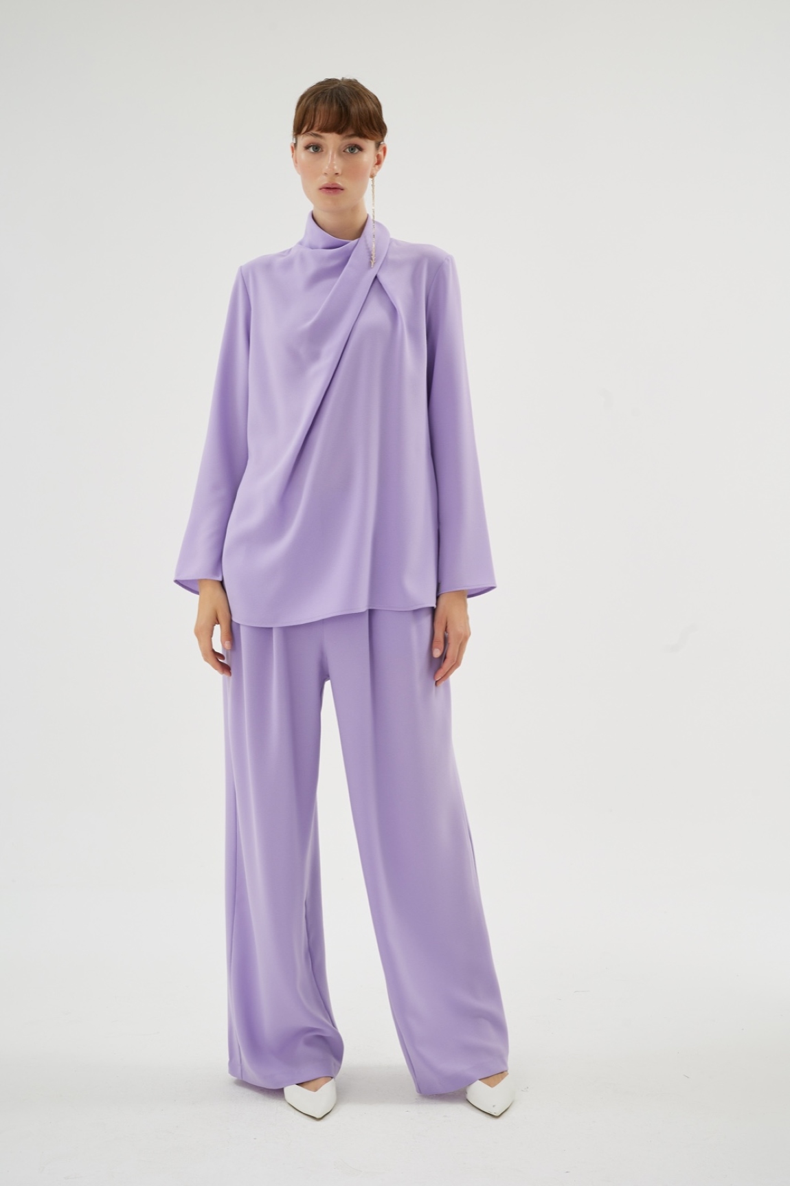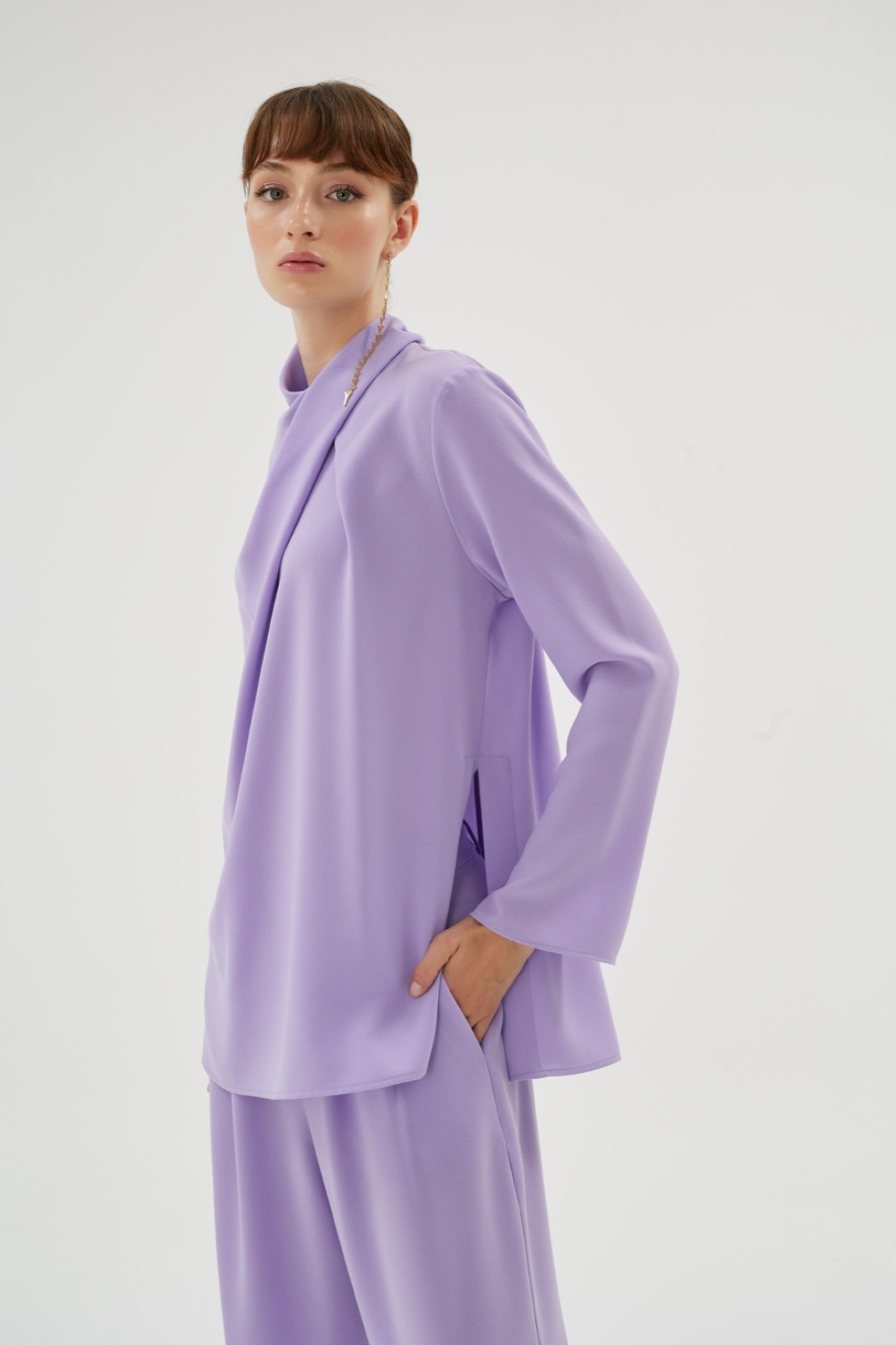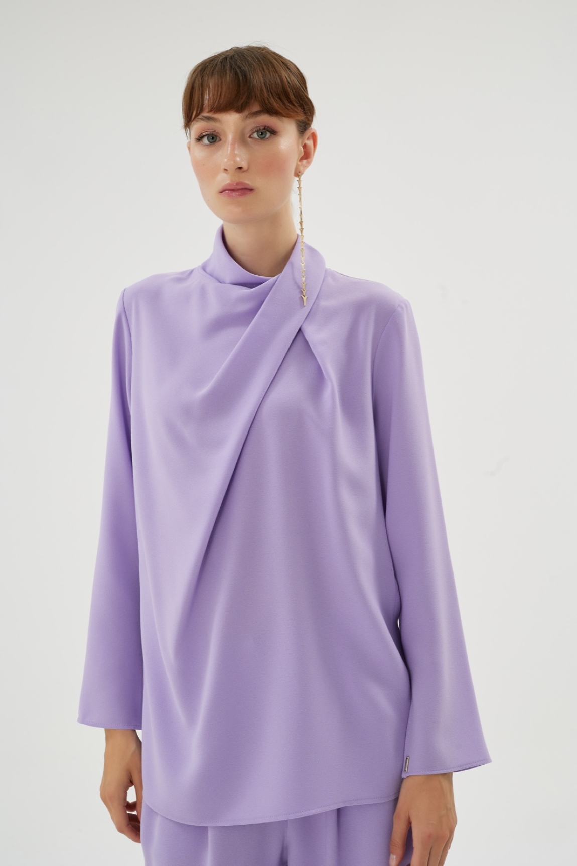 YENİ SEÇİL KADIN dik yaka drape detaylı bluz 10002521810004
