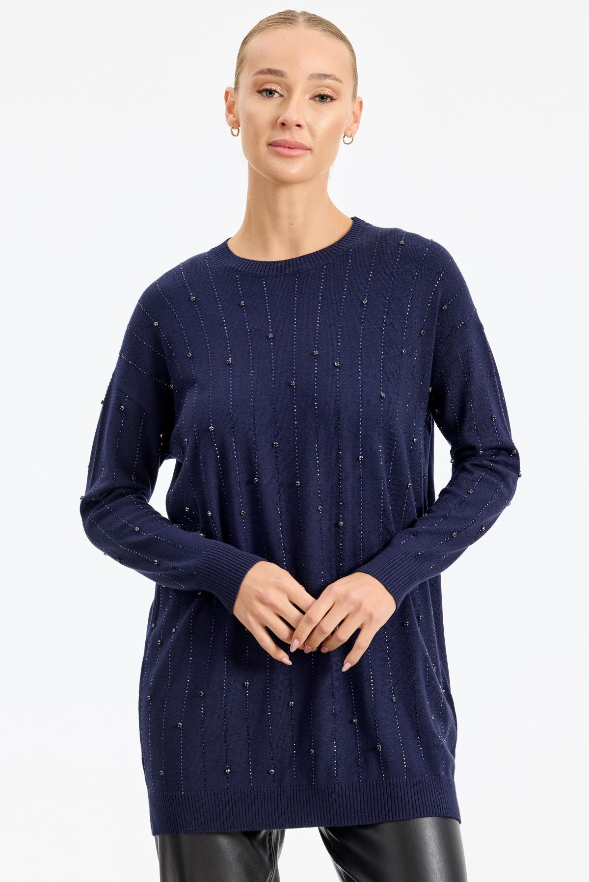YENİ TIĞ TRİKO KADIN OMUZLARI TAŞ DETAYLI TUNİK 2025 KIŞ TNK.21656.1