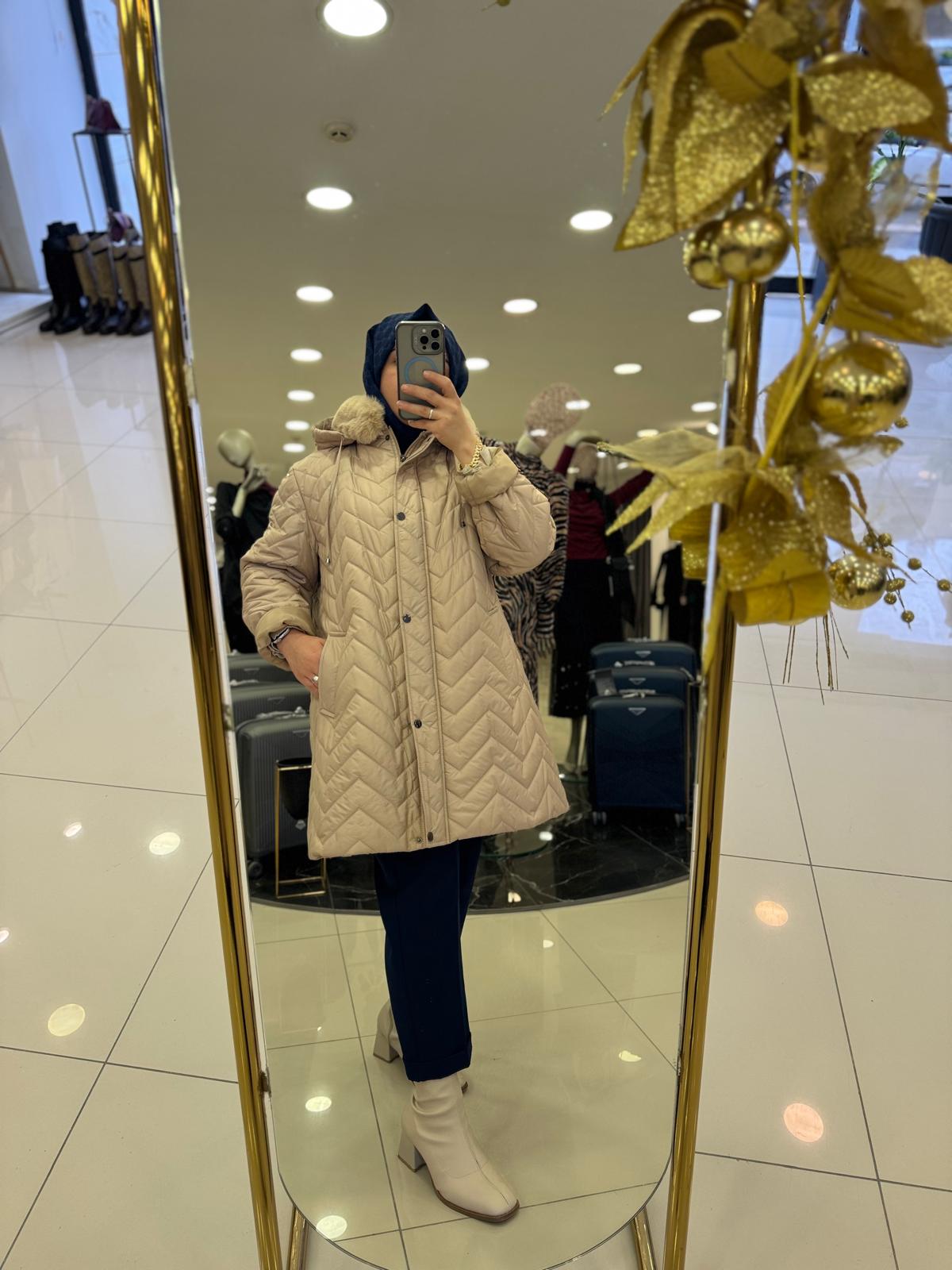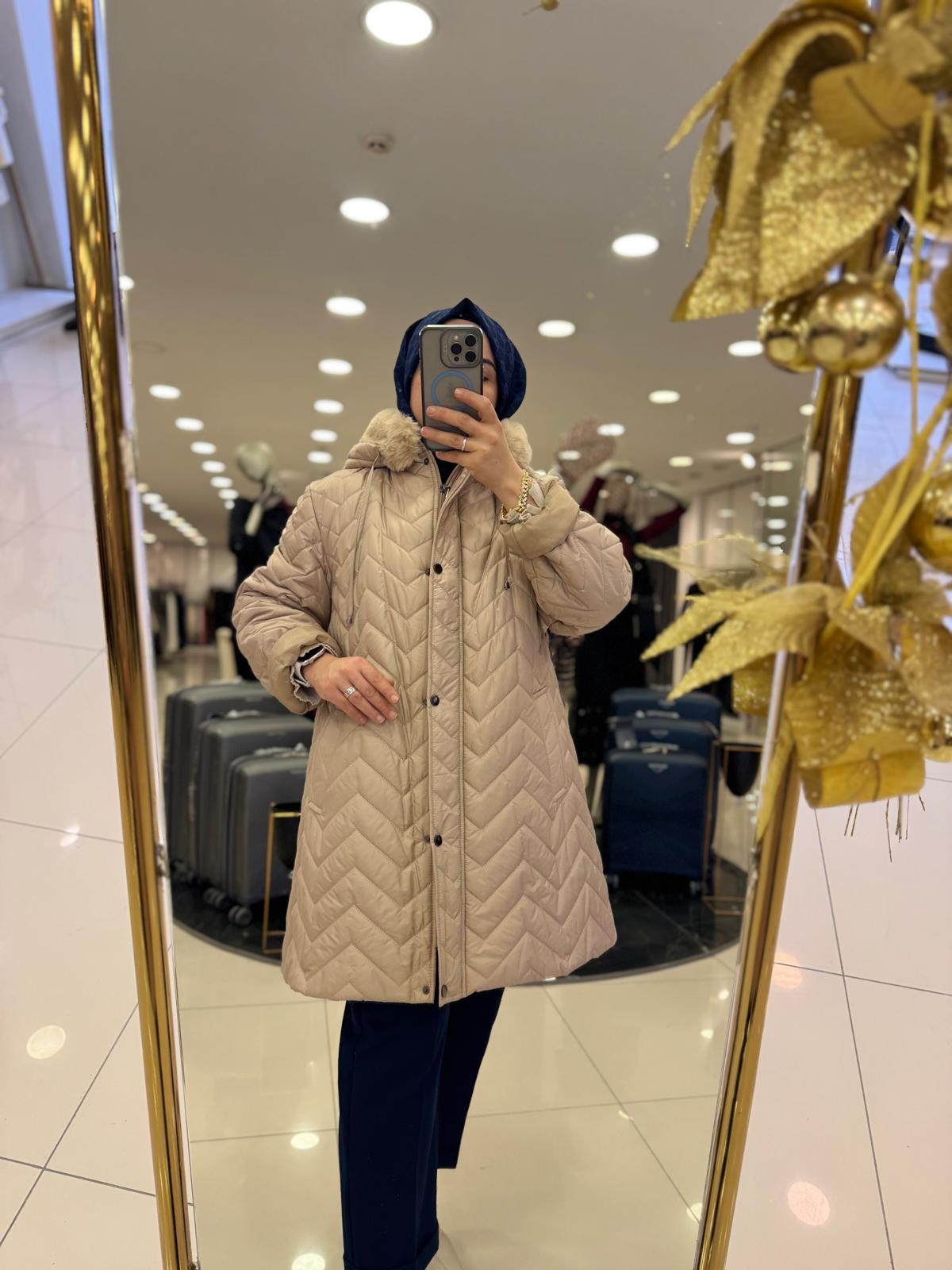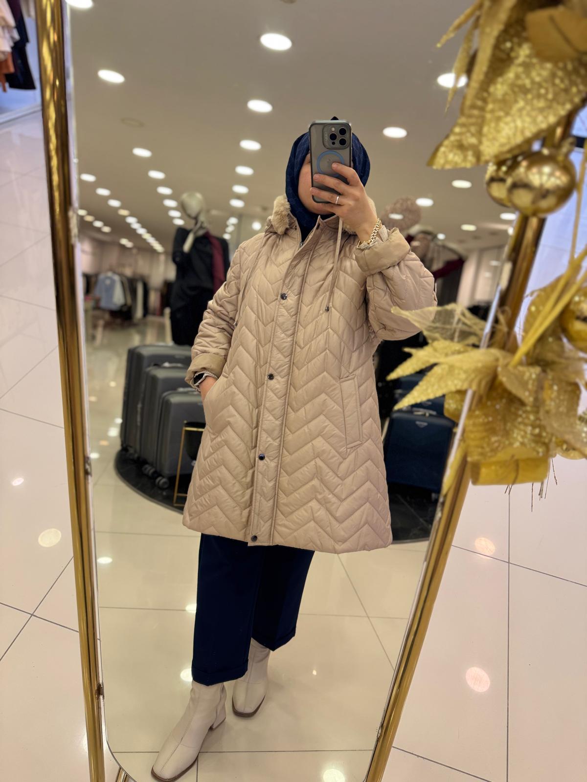 YENİ TRENÇ KADIN Yakası Kürklü Kapitone Kaban 1213