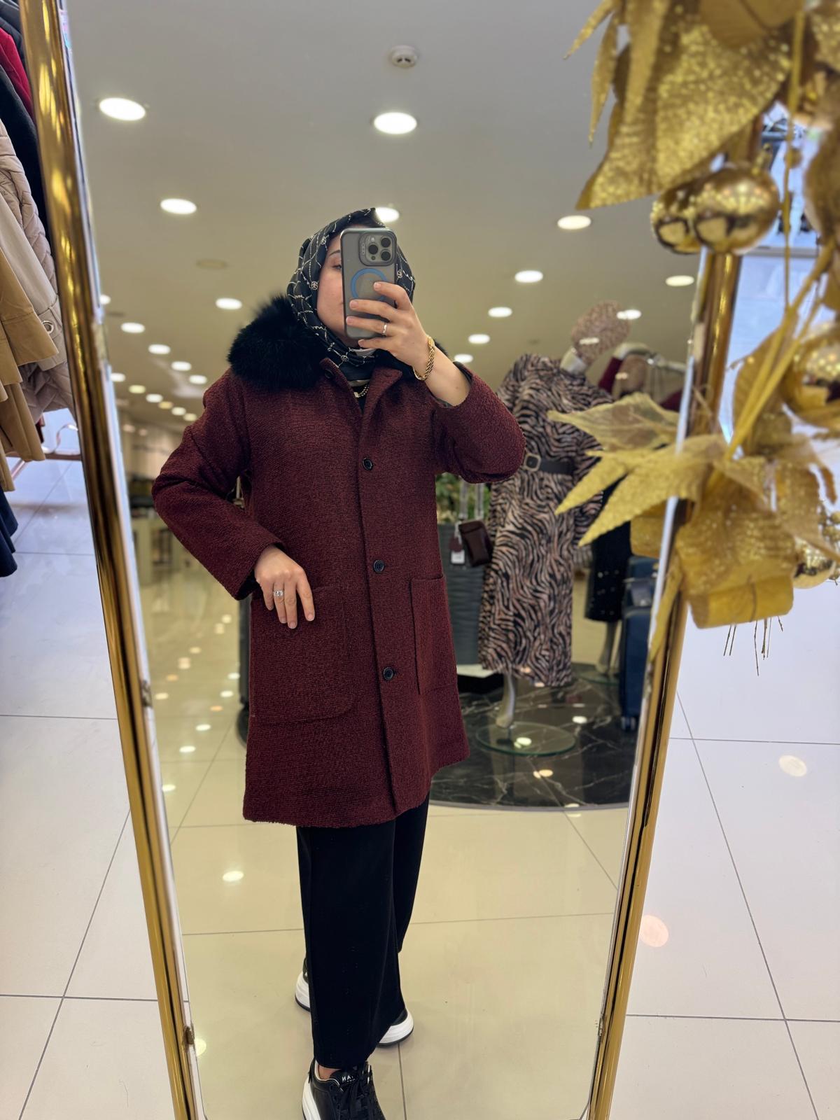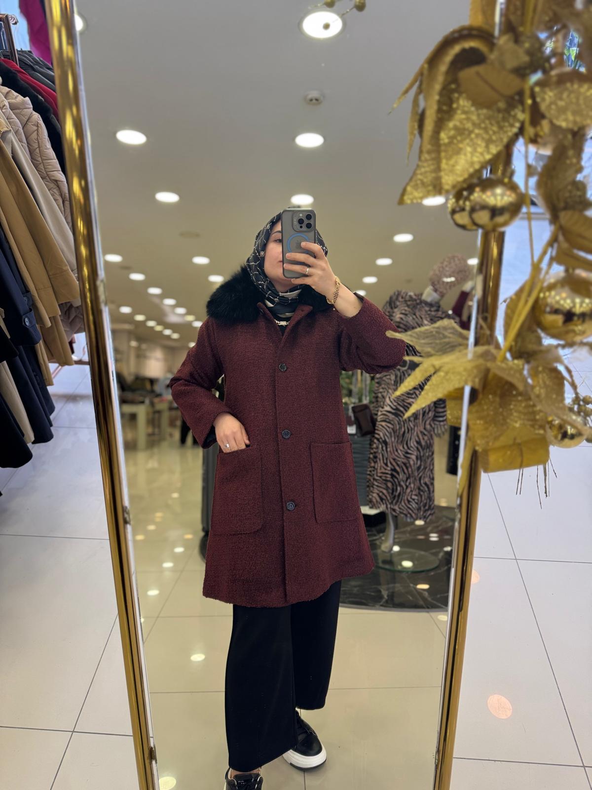 YENİ Yaqa KADIN KAHVERENGİ KÜRK DETAYLI KAHVERENGİ KAP 21015